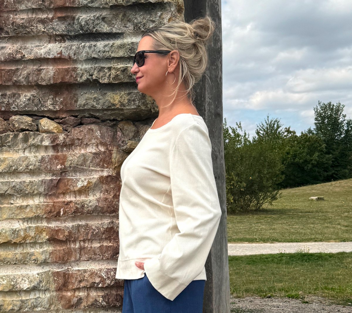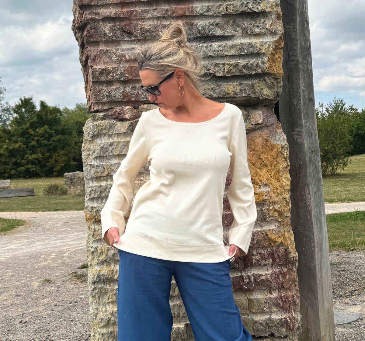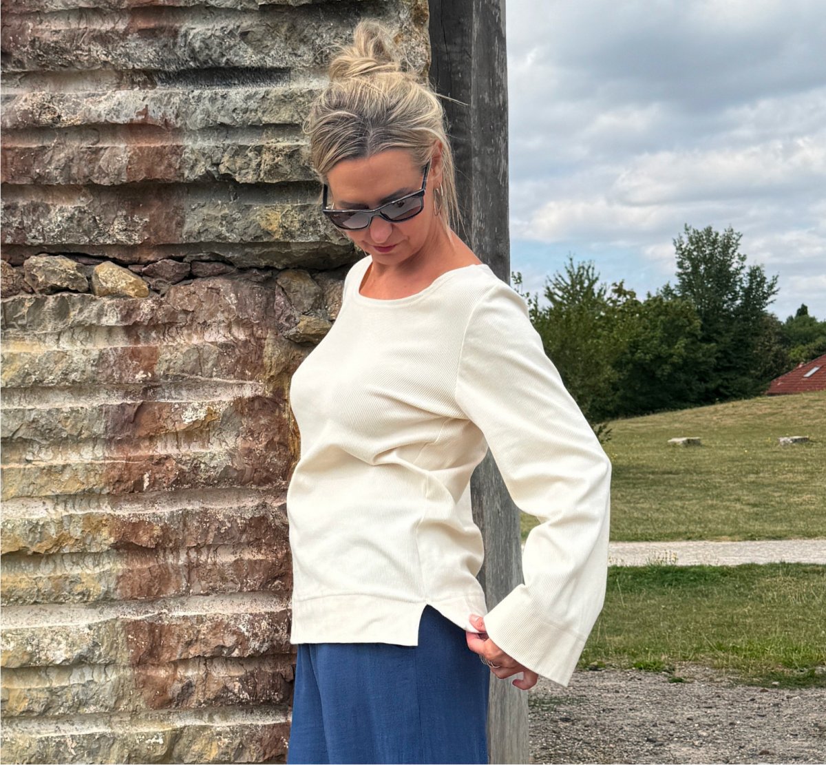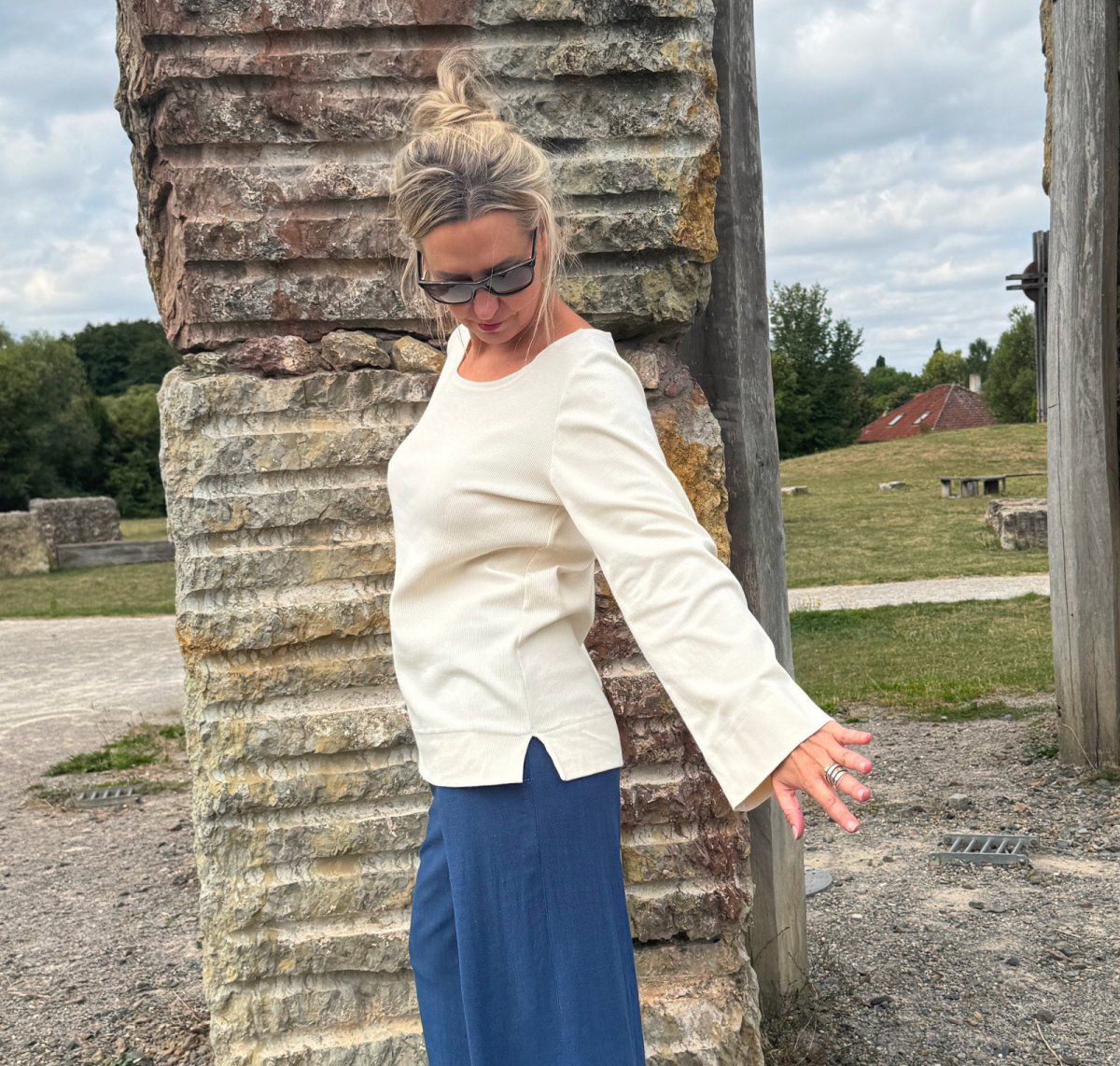 Top je ušitý z bavlněného žebrovaného úpletu.