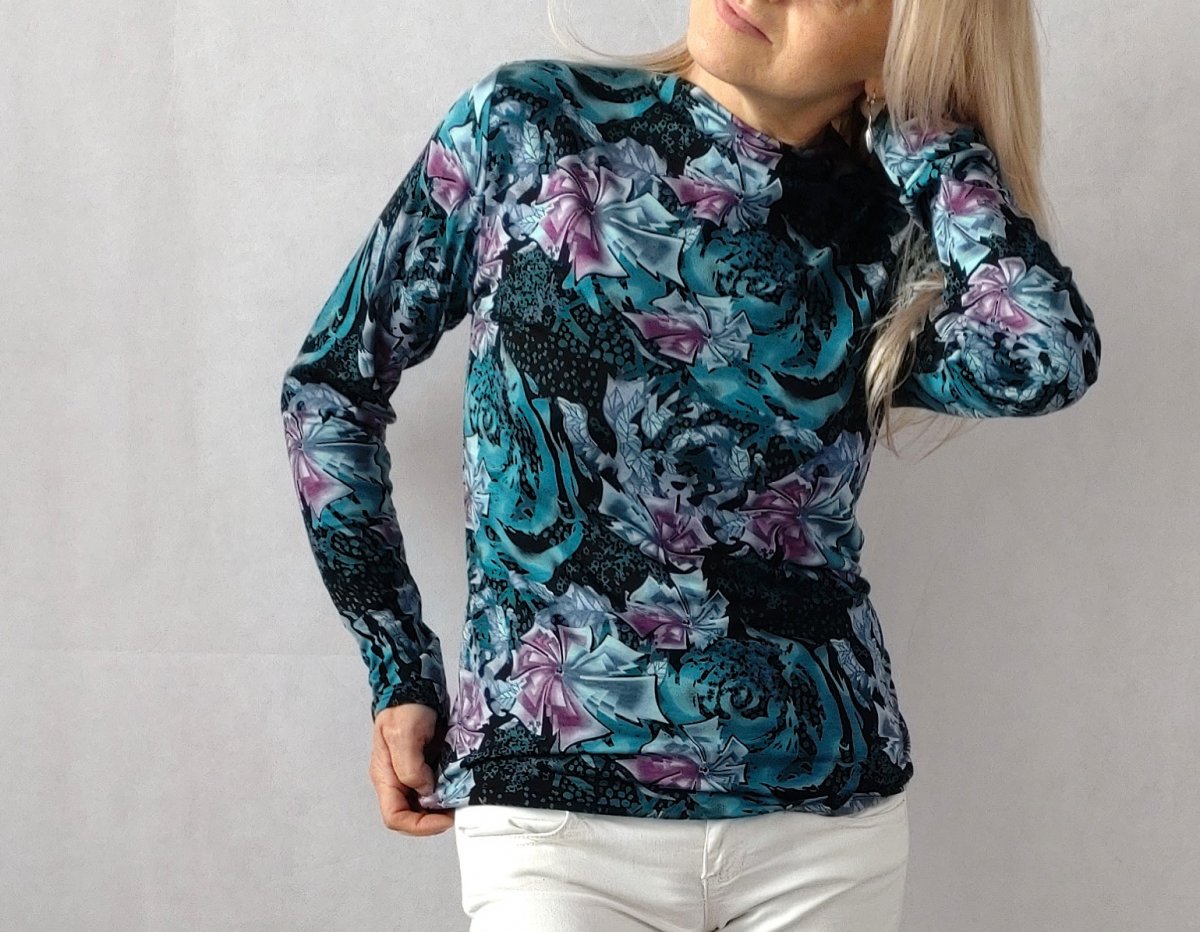 Jednoduchá elegance s rovným výstřihem ke krku a dlouhým rukávem.