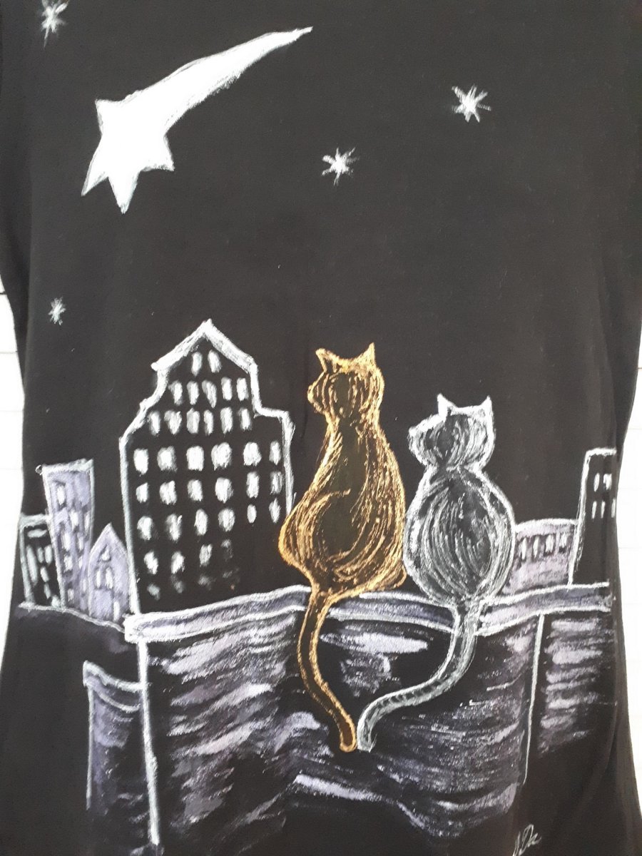 Motiv je možné namalovat i na jiný střih trička třeba vzor City, který je volnějšího střihu s širokým dolním lemem. Na přání namaluji na tričko s dlouhým rukávem, vyšší gramáže (pevnější) nebo na Váš oblíbený typ trička, pokud je k dostání. Napište své přání do poznámky k objednávce.