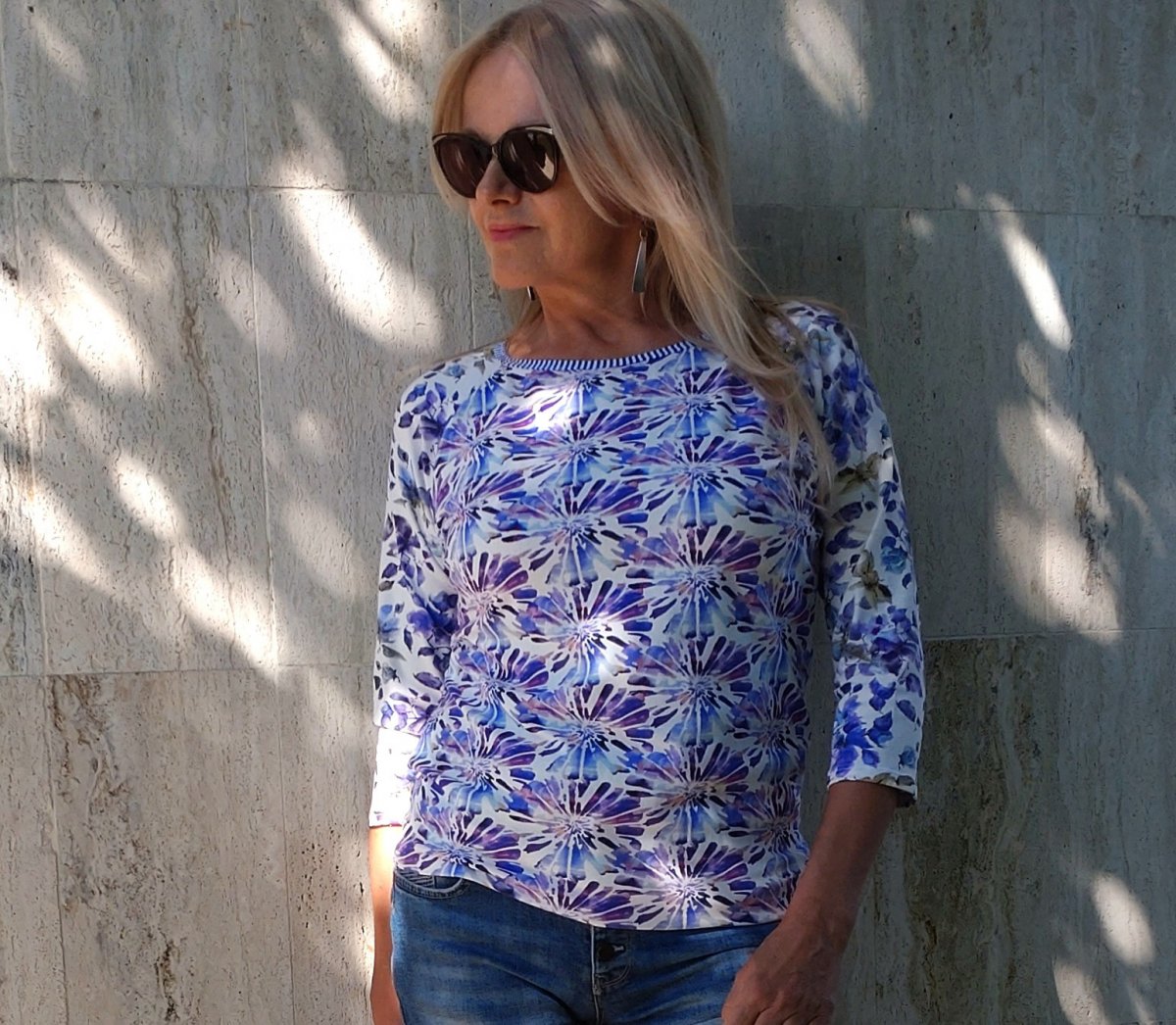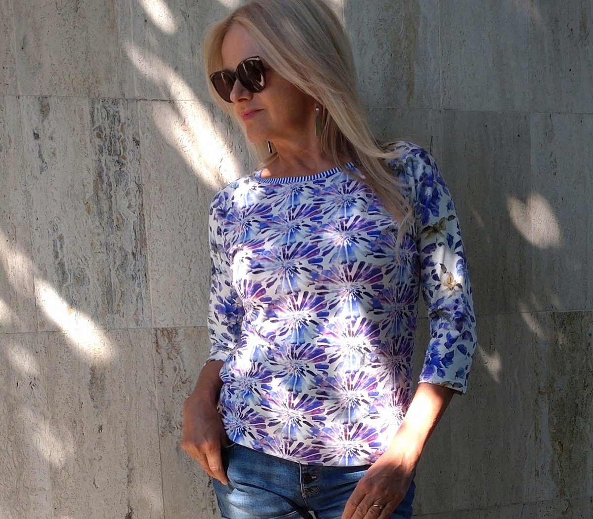 Raglánové tričko z elastického úpletu ve složení bavlna s lycrou. Kombinace vzájemně ladících potisků