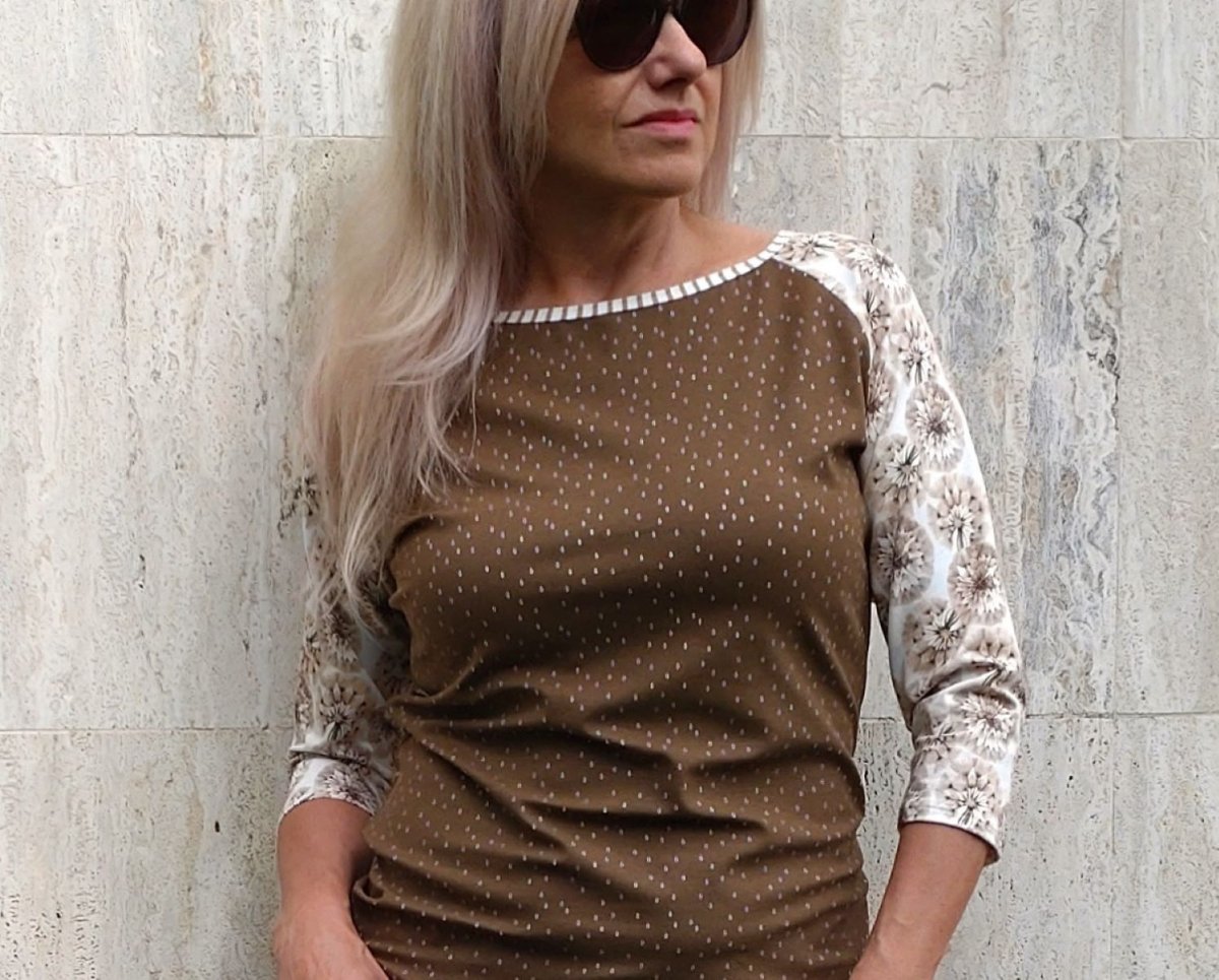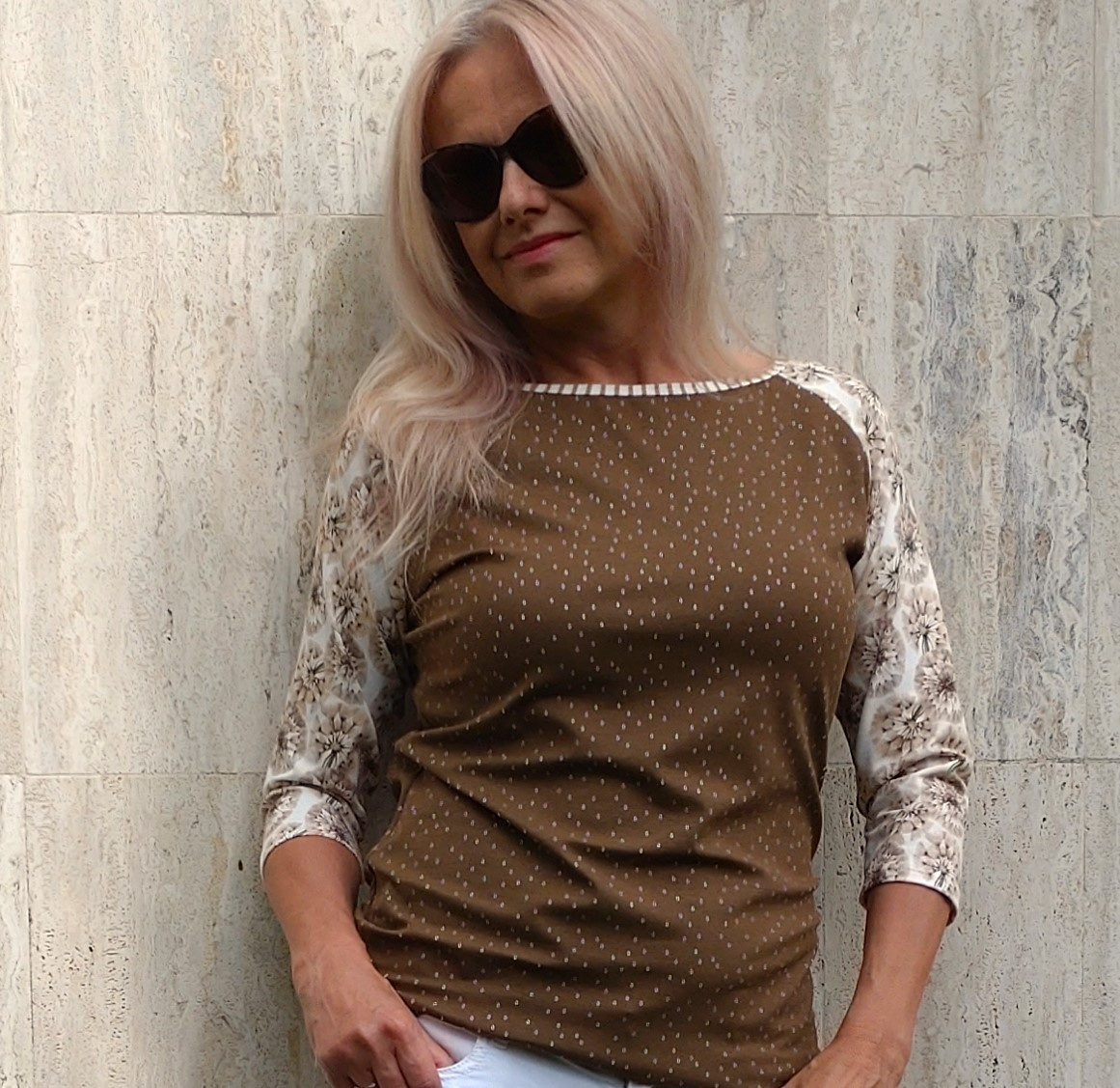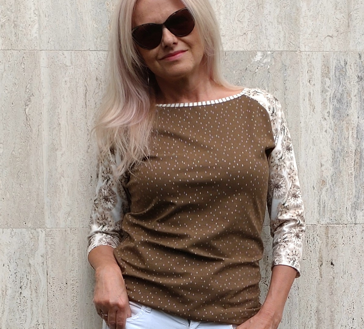 Raglánové tričko z elastického úpletu ve složení bavlna s lycrou. Kombinace vzájemně ladících potisků.