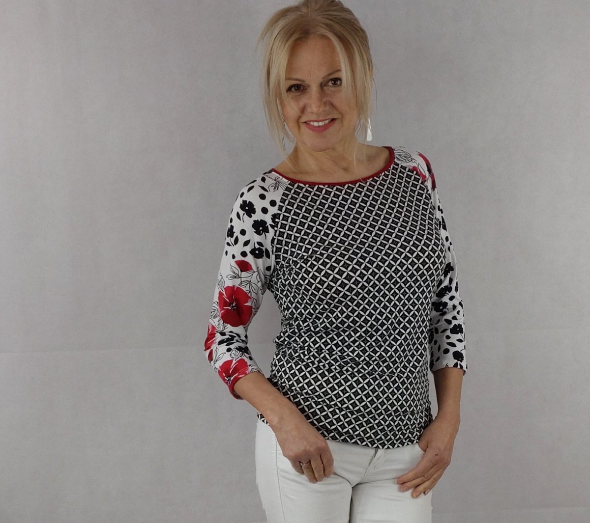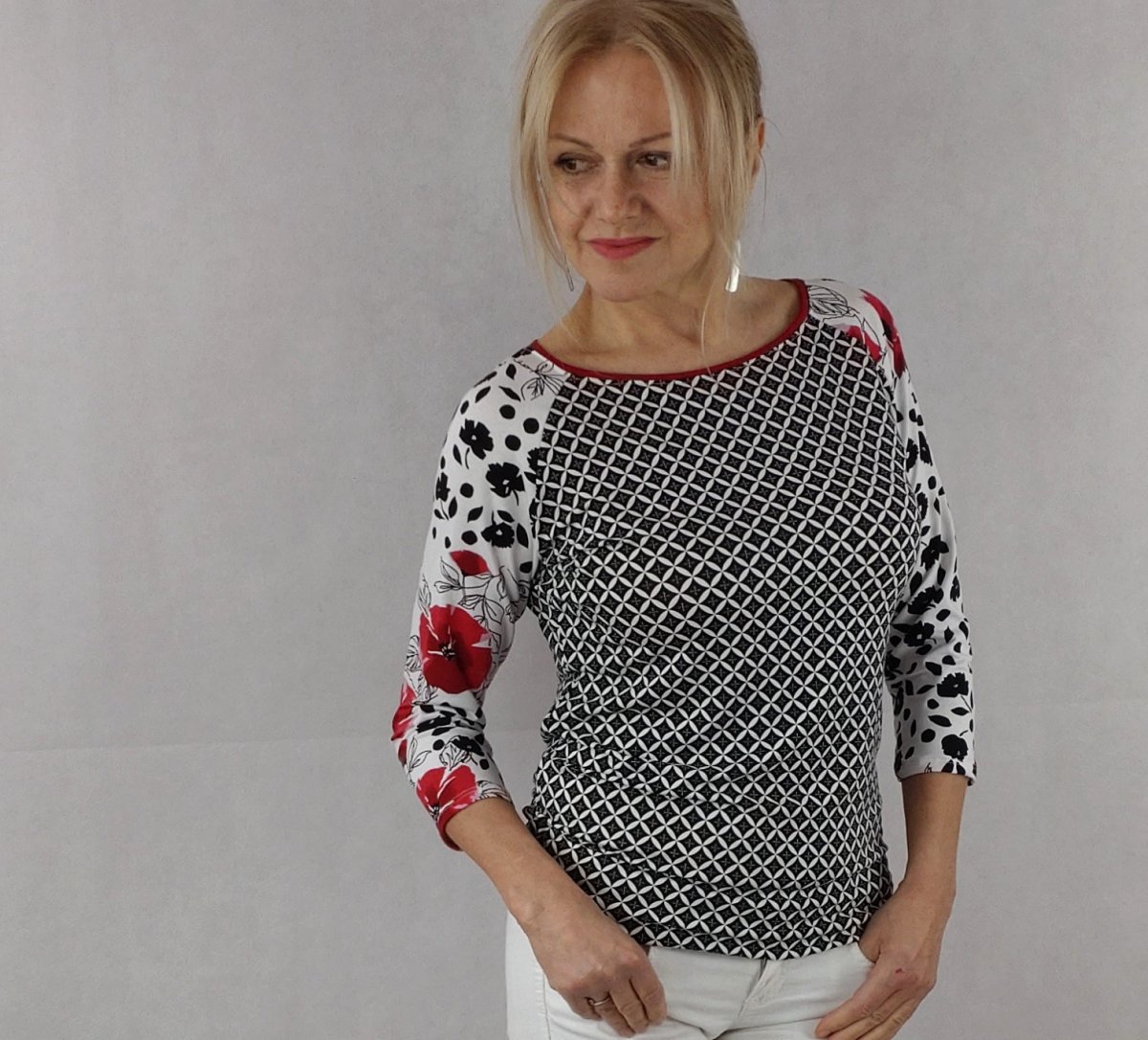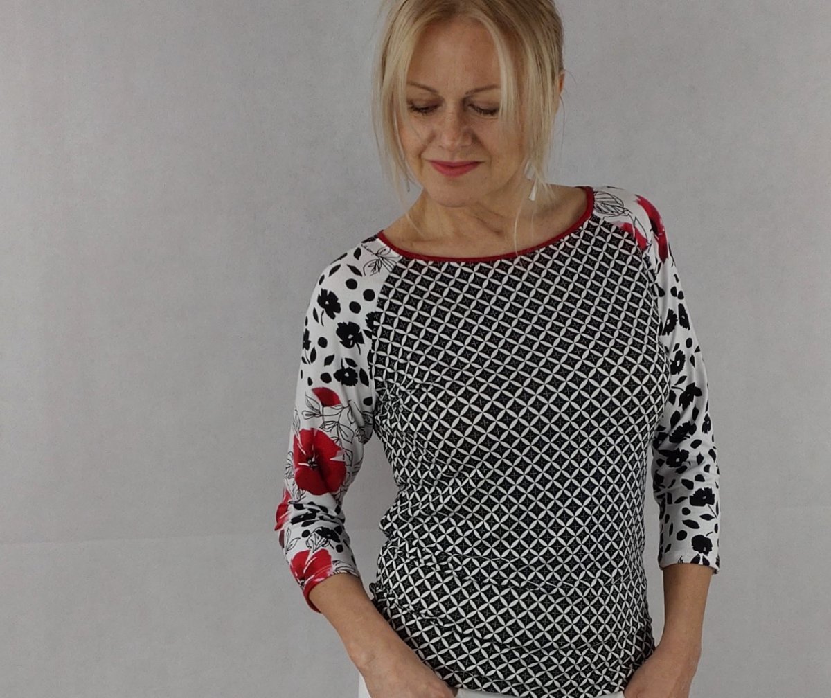 Raglánové tričko z elastického úpletu ve složení viscóza s lycrou.