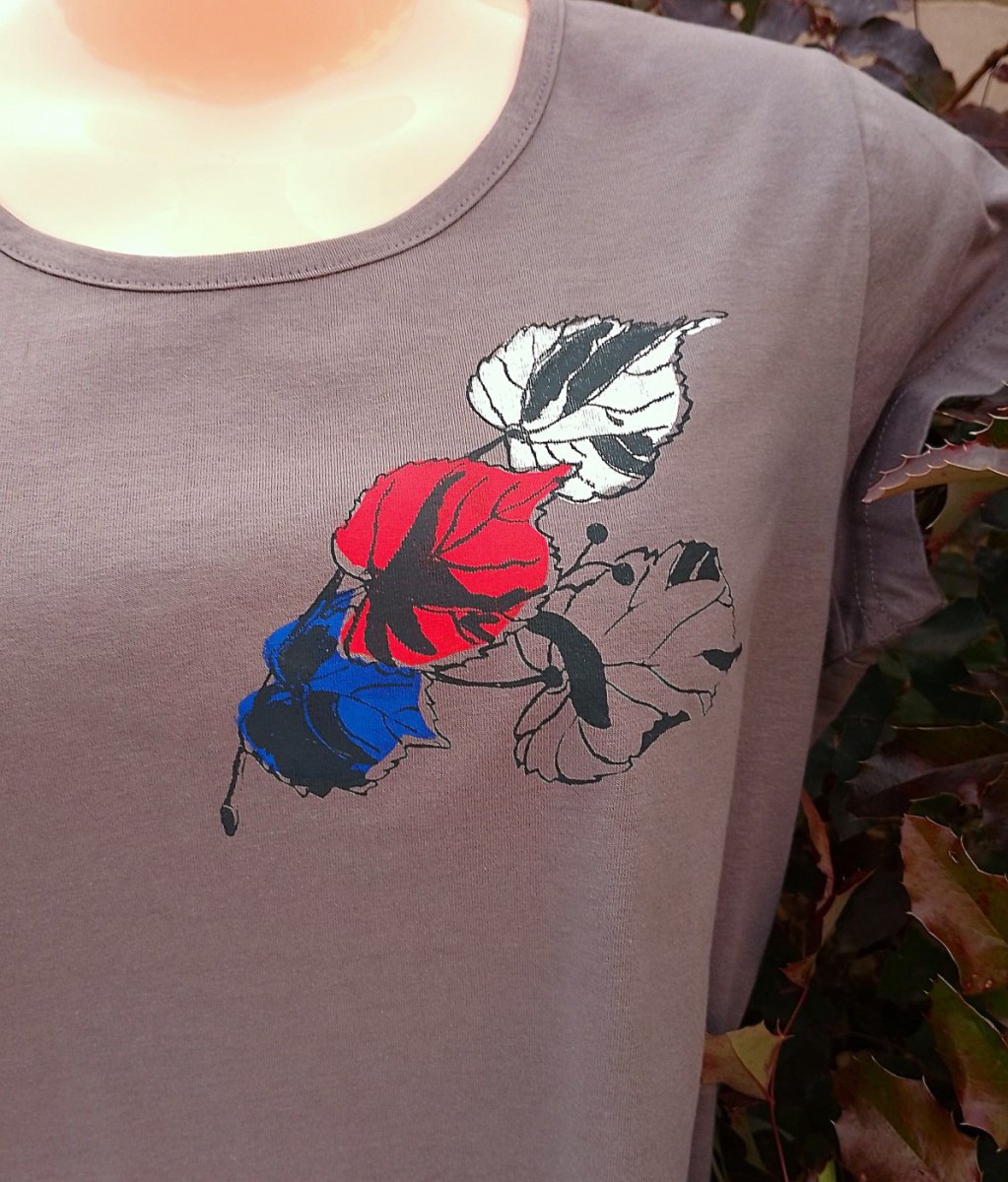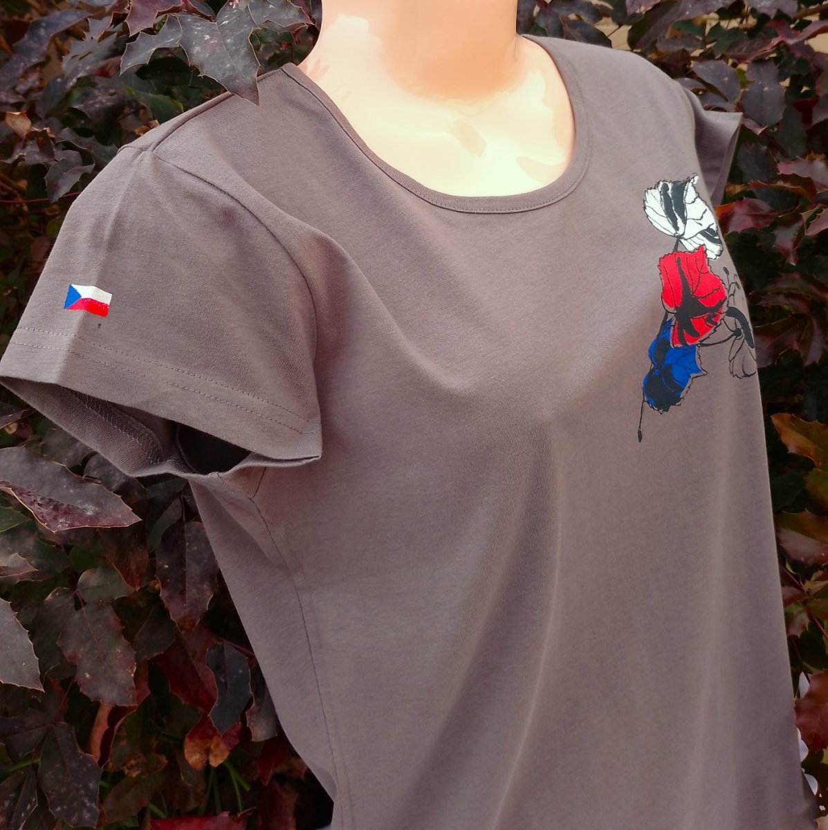 Bavlněné tričko značky Malfiny(Adler) s originálním ručním potiskem lipové větvičky v českých národních barvách.