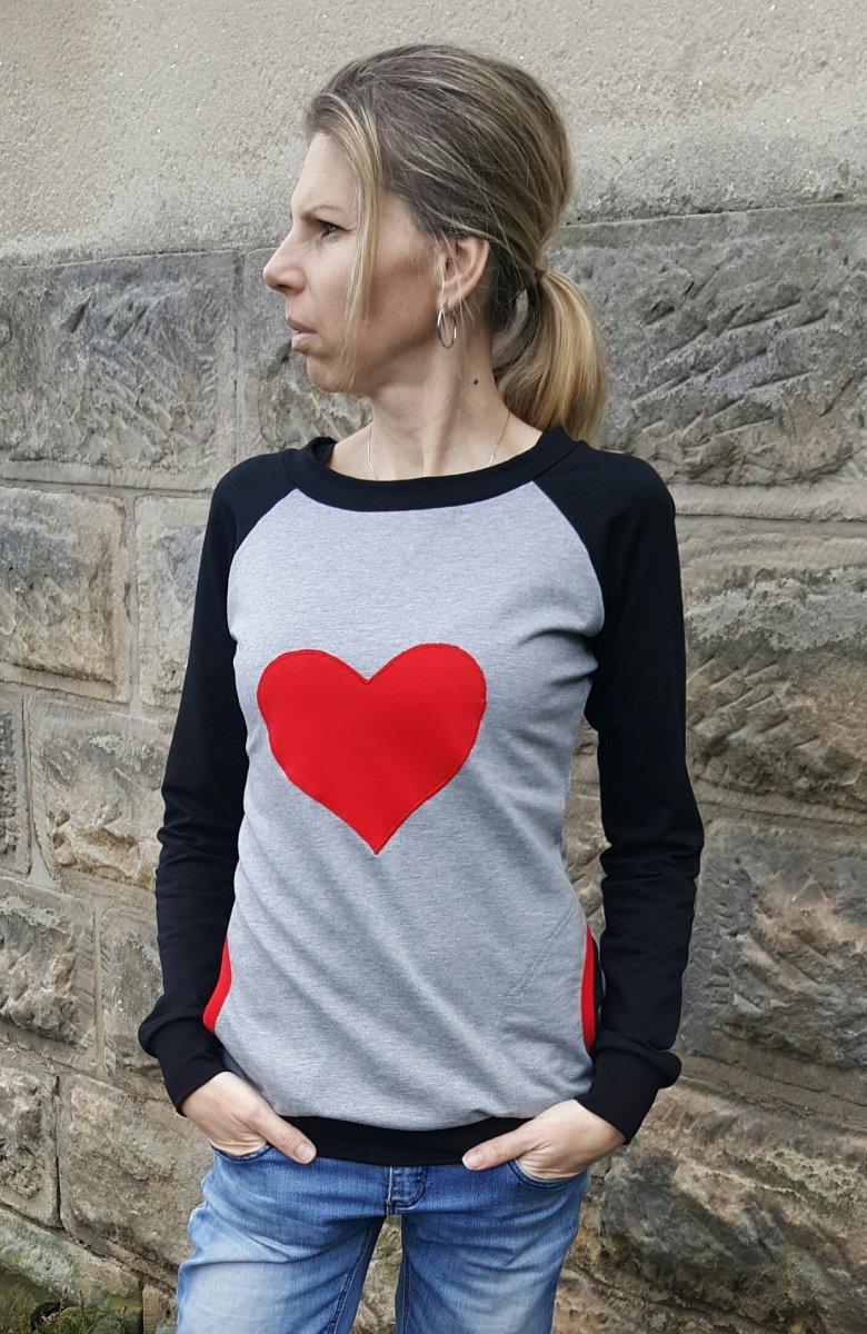 Rukávy a délka všitá do nápletu na předním díle aplikace srdce,