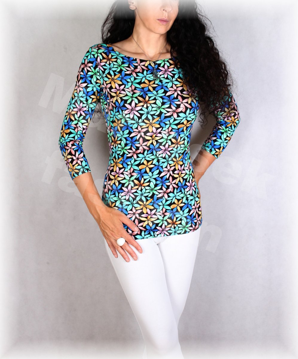 Velikosti 36-44 nafocené triko je ve větší velikosti a na postavě volnější
