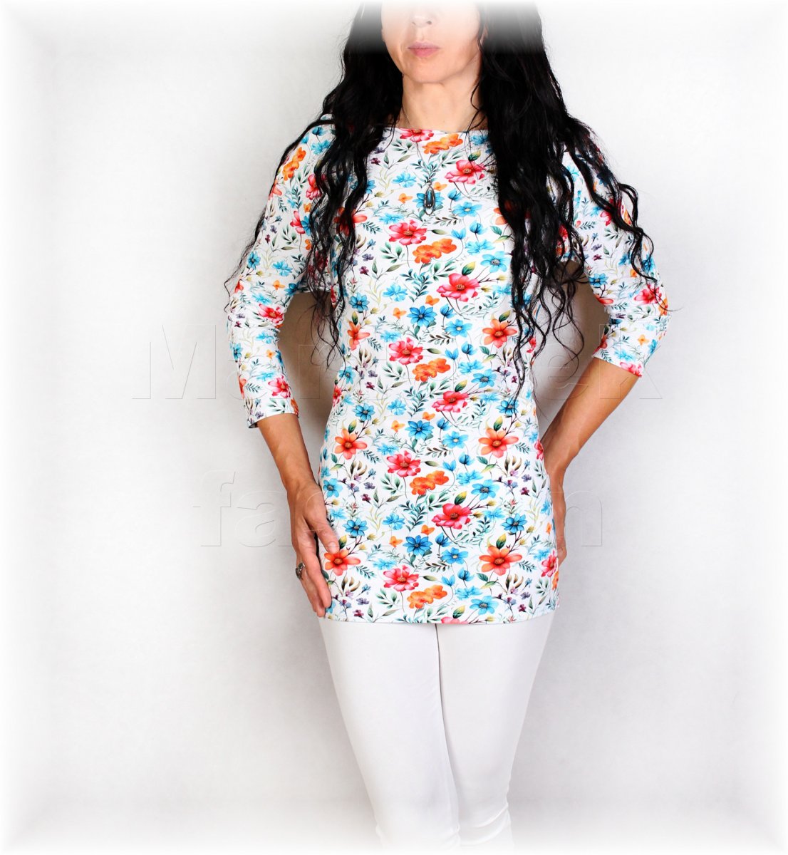 Velikosti 36-46 nafocené triko je ve větší velikosti a na postavě volnější