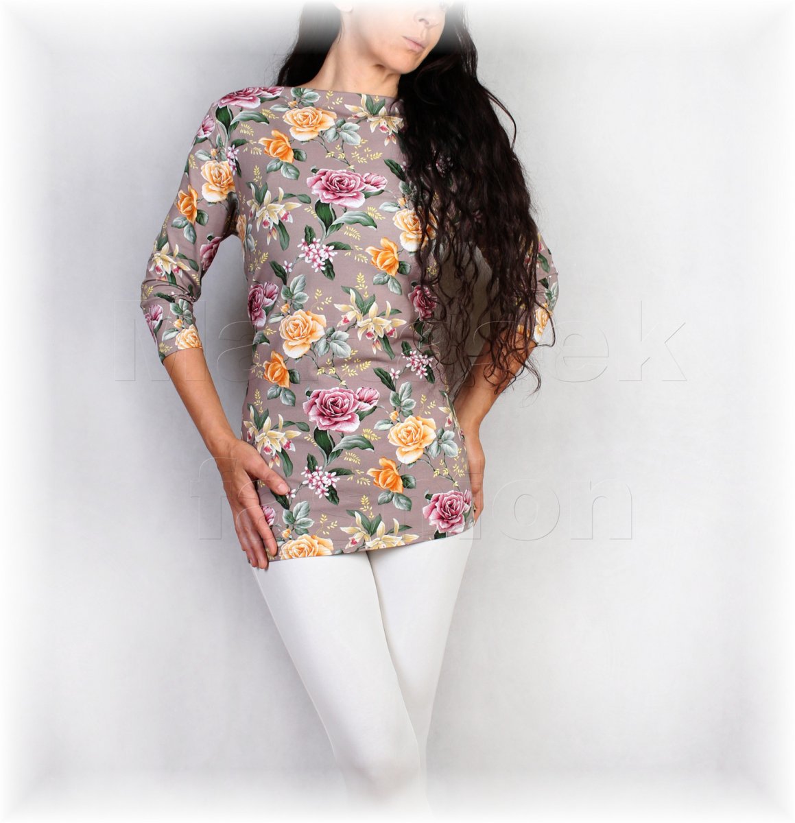 Velikosti 36-44 nafocené triko je ve větší velikosti a na postavě volnější