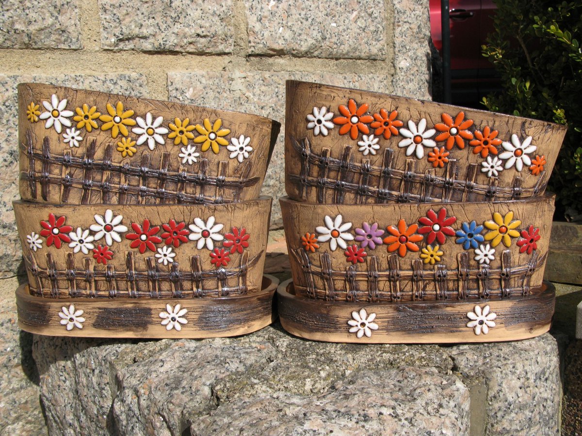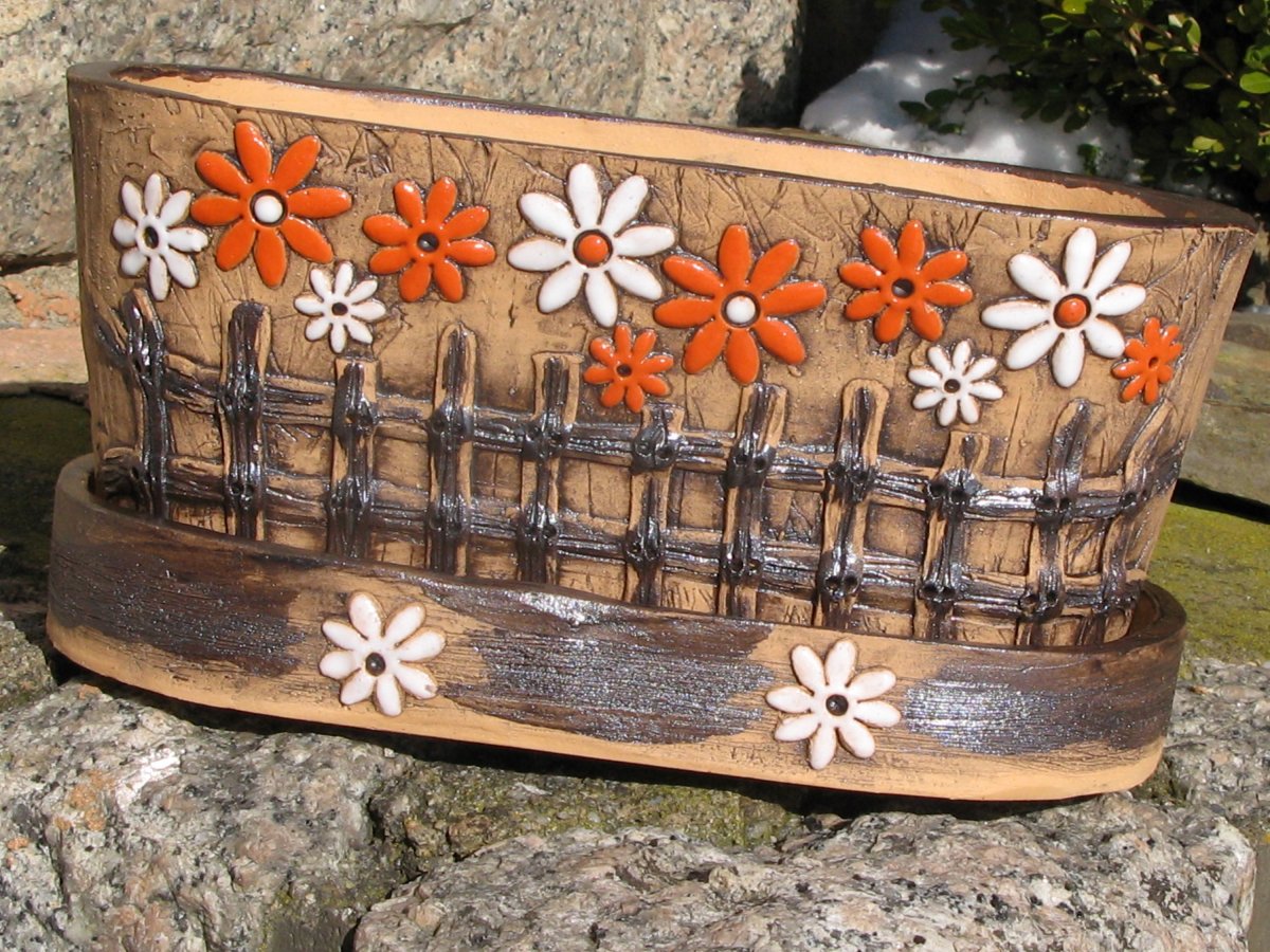 Délka 25 cm, šířka 12cm, výška 11 cm, odtokové otvory a malé nožičky pro lepší odtok přebytečné vody, podmiska v ceně