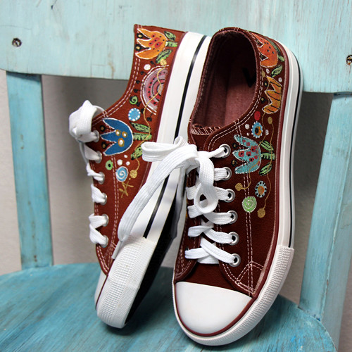 Ručně malované hnědé botičky, tenisky, plátěnky