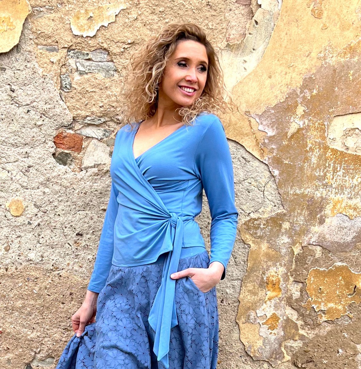 Tunika s volnými rukávy a zavázáním v pase na velkou mašli z úpletu viskóza/elastan.