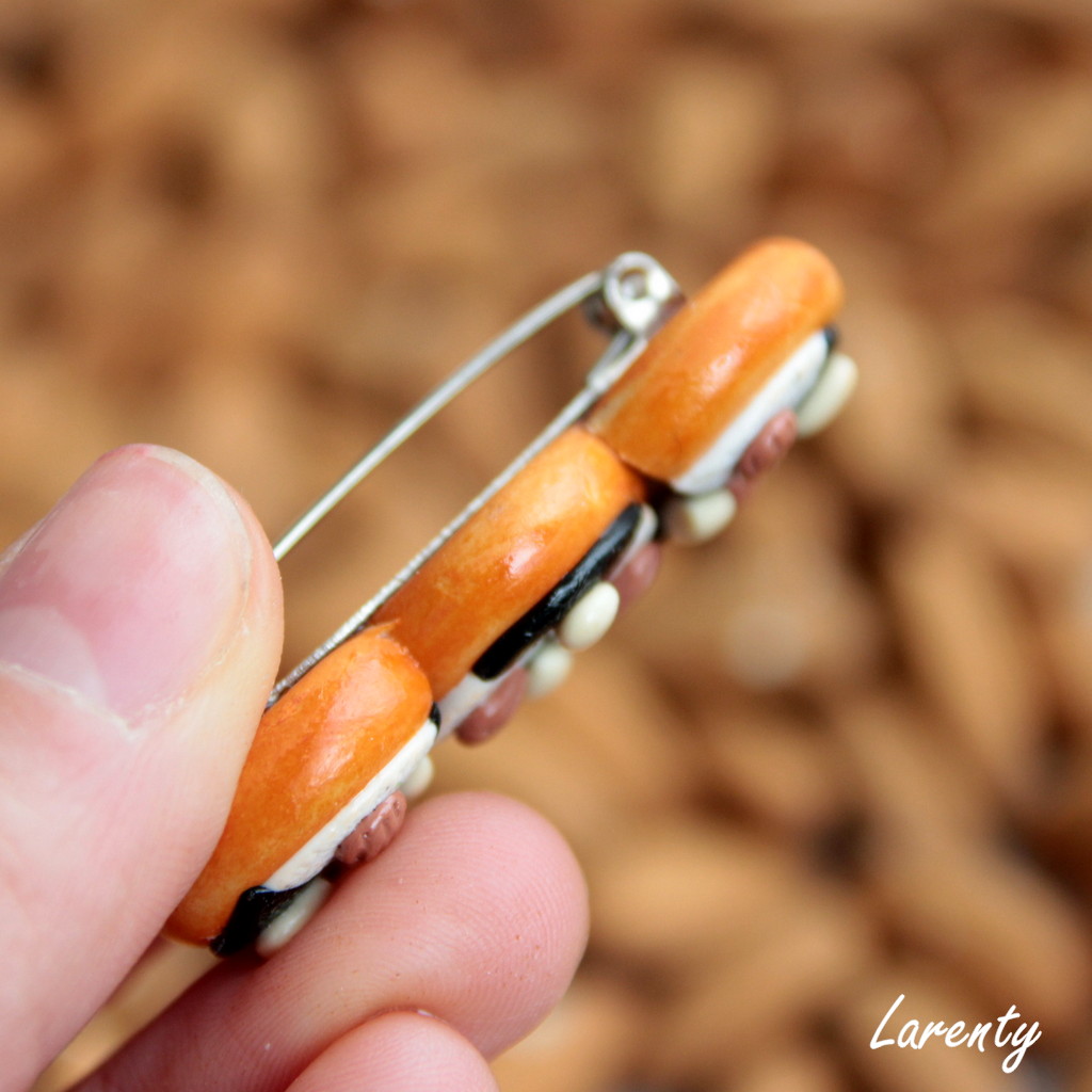 Brož se třemi kousky tvarohovo-makového koláče dozdobeného mandličkama, která se krásně leskné a je rozhodně nepřehlednutelný a originální doplněk.