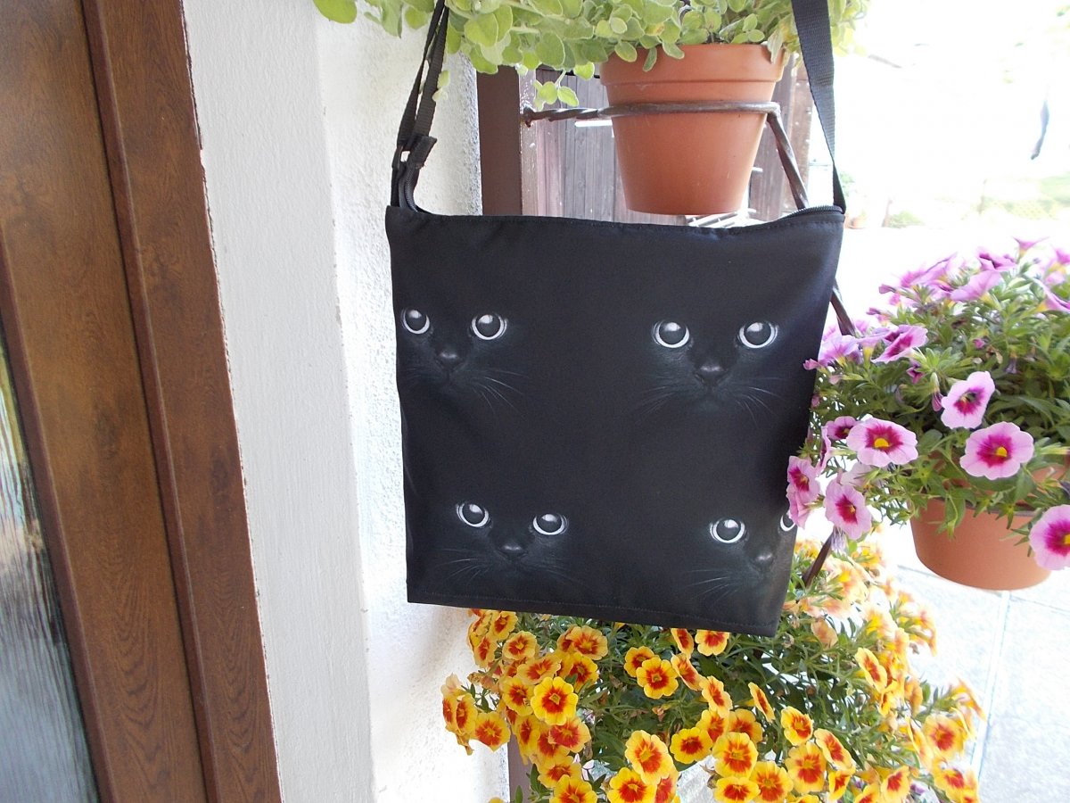 Zajímavá kabelka (cross-body taška) je vyrobena z vodo-odpudivého pevného materiálu, přední díl oči kočičí, zadní jednobarevný.
