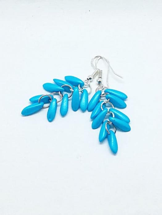 Náušnice jsou vyrobený ze skleněných korálků tyrkysovomodré barvy s matnou úpravou