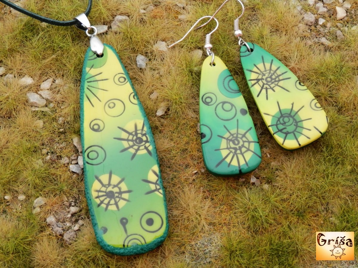 Náušničky i přívěsek mají na lícové straně lesklou povrchovou úpravu tekutým polymerem.