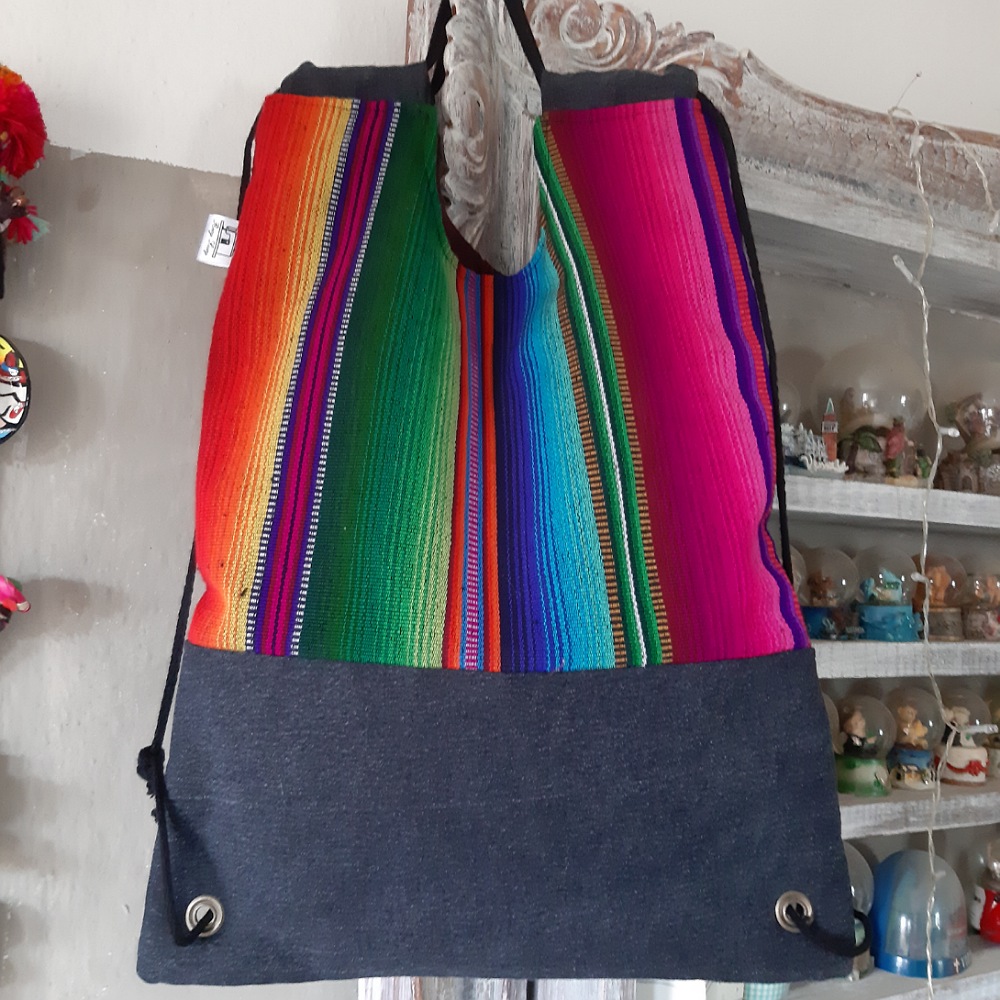Vako - taška je šitá z guatemalského serape - pevnější tkaná látka a černé rifloviny.
