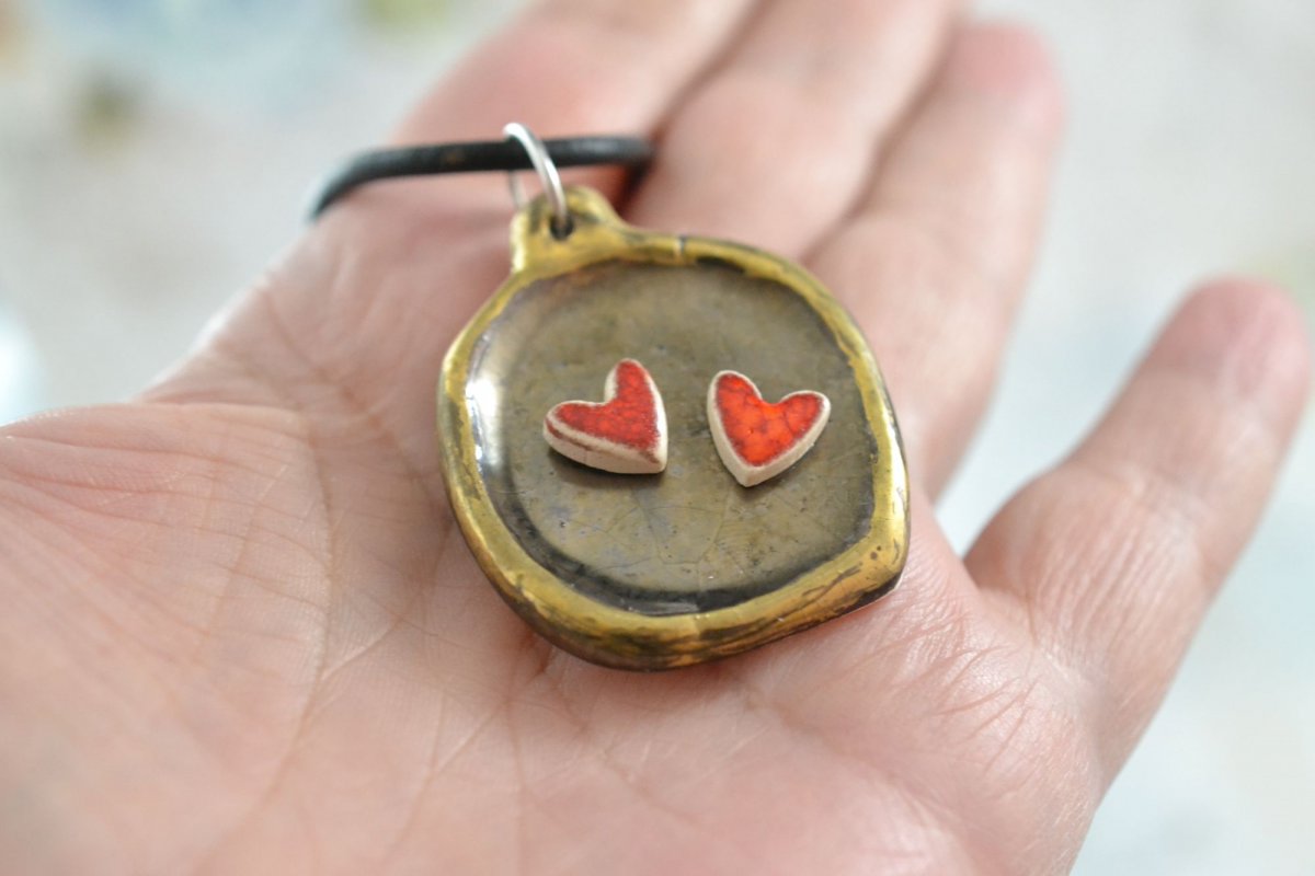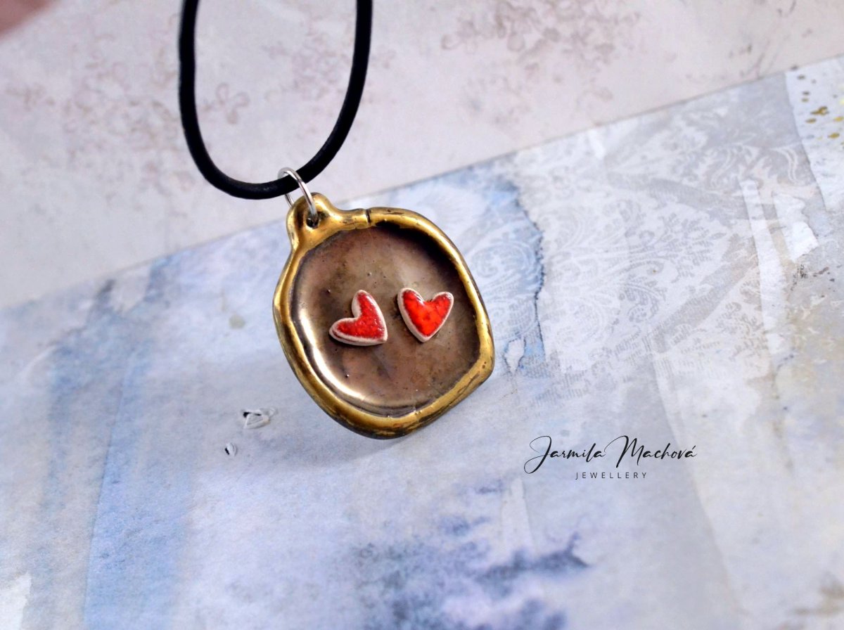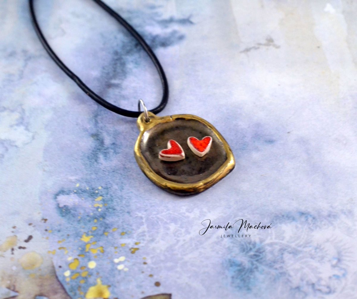 přívěsek ve stylu "vintage"..... - porcelán...a keramická srdíčka