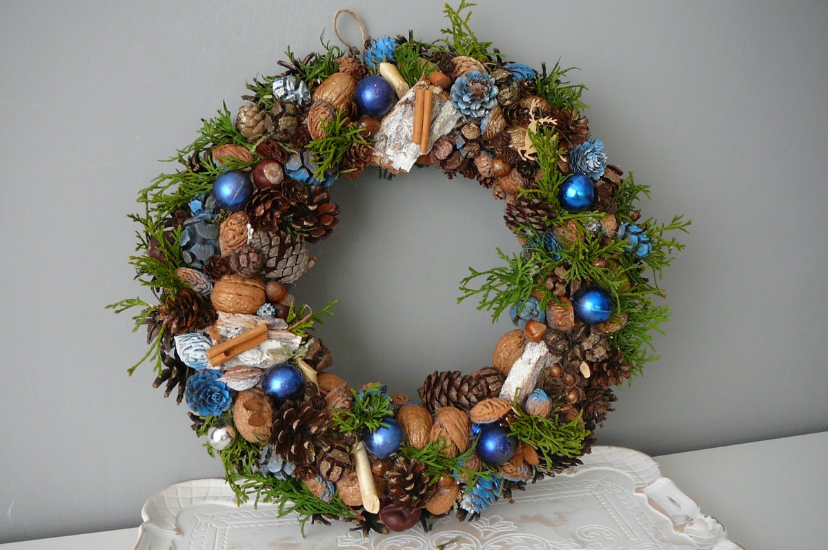 Věneček z přírodních materiálů a samozřejmě s baňkami – kouzlo každých vánočních svátků. Může být umístěn jak v interiéru, tak i v exteriéru pod stříškou. Průměr věnce je 35 cm.