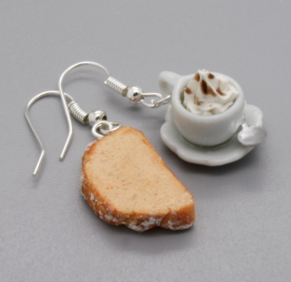 ručně modelovaný šperk z polymerové hmoty a porcelánový hrníček,