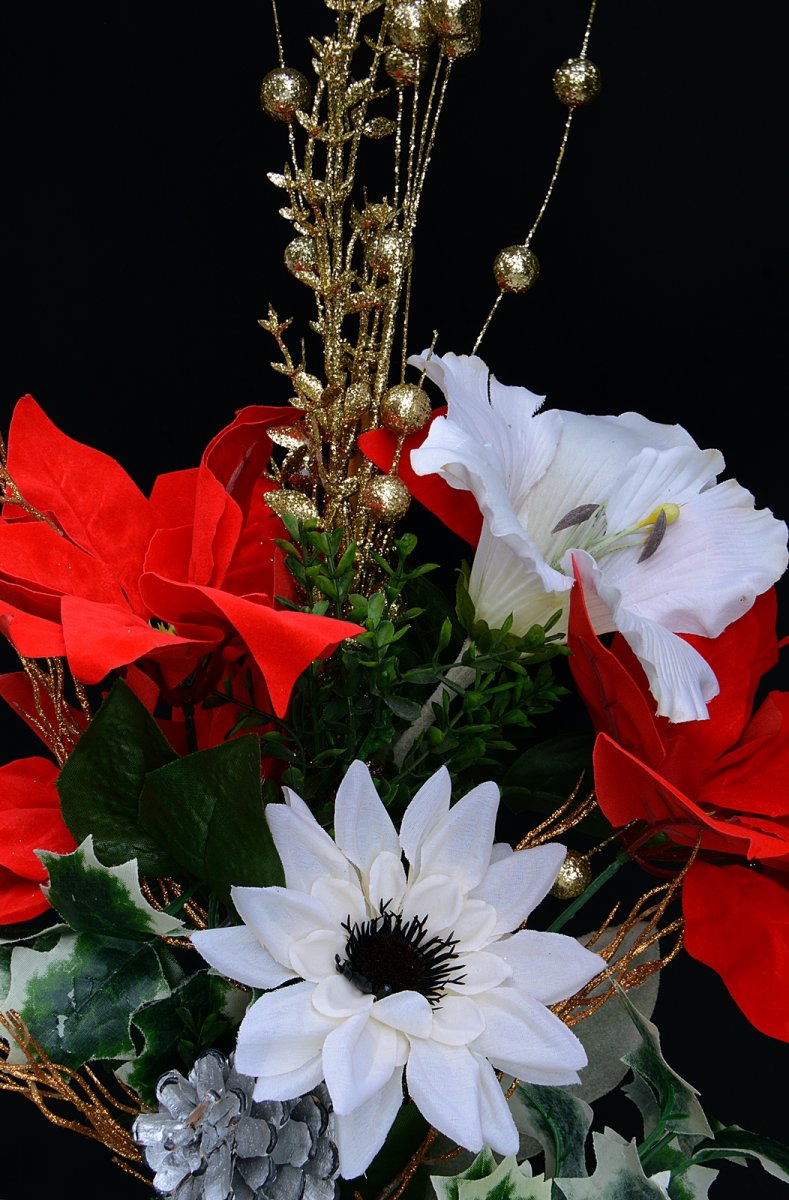 Kytice z umělých květů + přízdoby vánoční o délce kol.75 cm.