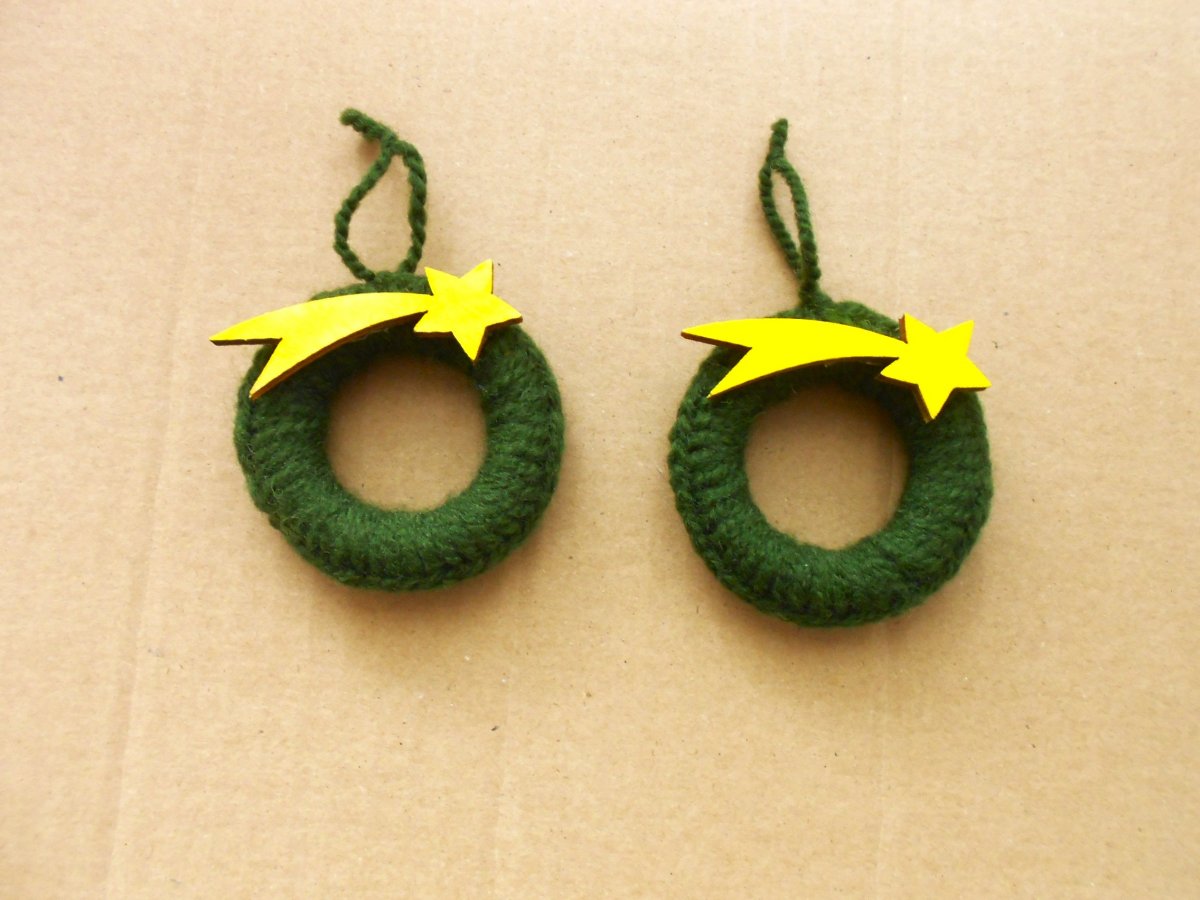 Ručně dělaná vánoční ozdoba se žlutou kometkou, kometka je namalovaná akrylovou barvou a nalakovaná bezbarvým lakem vhodným i na hračky, cena za 2 ks.