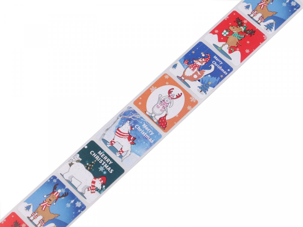 Papírové samolepky ve tvaru čtverečku zdobí vánoční barevný potisk. Na samolepkách najdete 6x se opakující motiv. Využijete je na zdobení přáníček, deníků, dárků, foto rámečků, alb, pozvánek, krabiček apod.