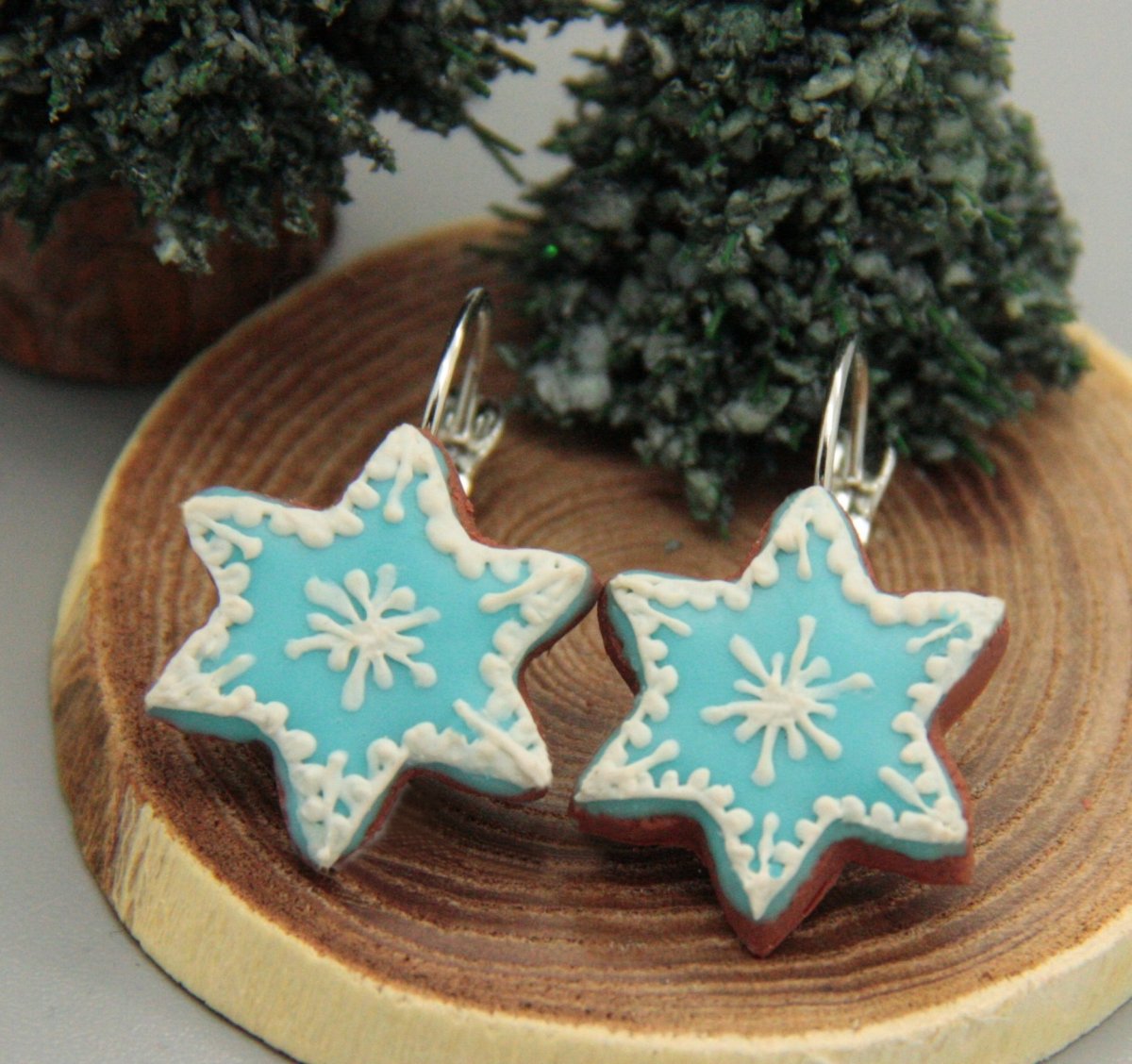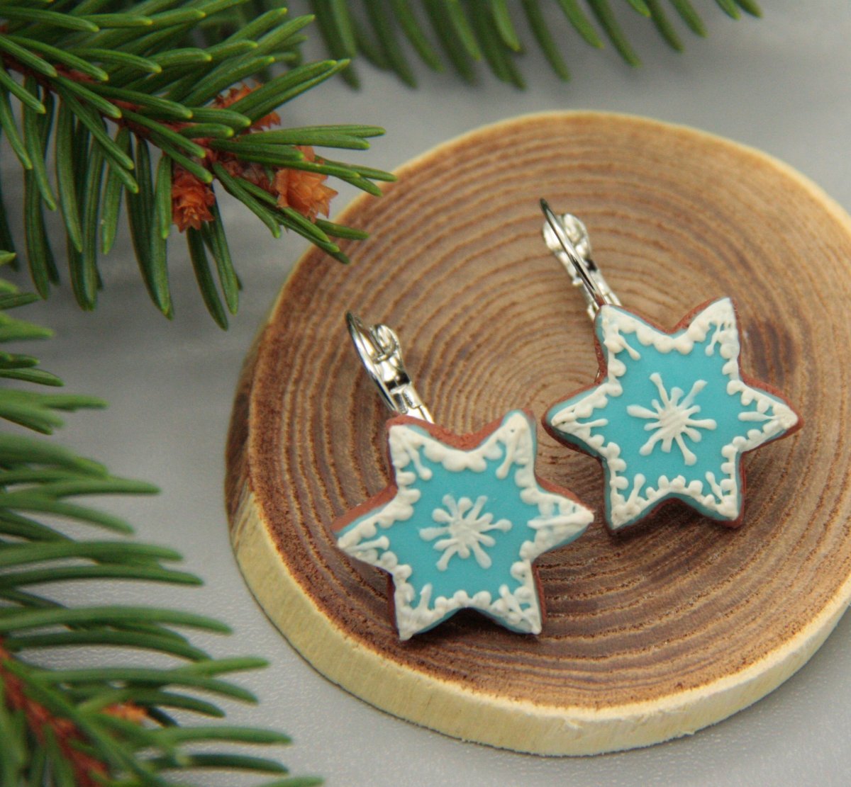ručně modelovaný šperk z polymerové hmoty, perníčky, ručně zdobené červenou polevou a bílým zdobením,