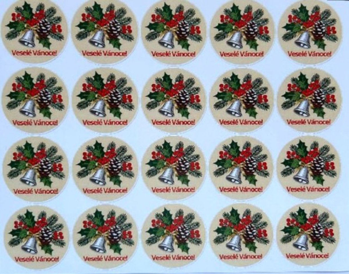 Kulaté vánoční papírové samolepky využijete na zdobení přáníček, dárků, pozvánek, krabiček apod.