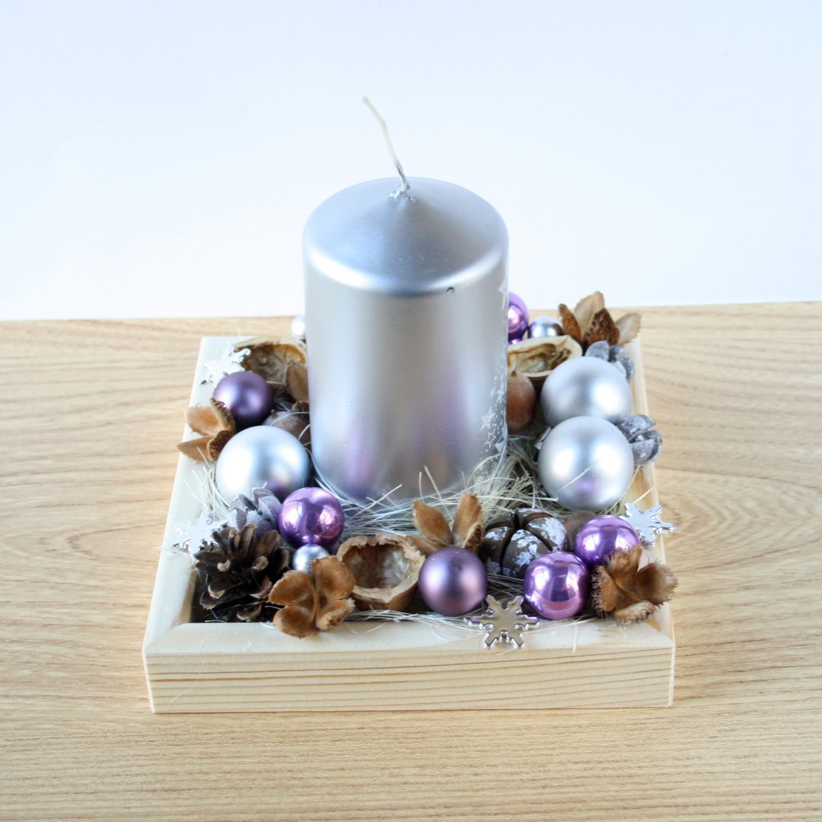 Vánoční svícen z přírodních a umělých materiálů. Trvanlivá dekorace (neopadává). Svíčka není přilepená, aby se dala v případě potřeby vyměnit. Svícen tak poslouží na několik sezón.