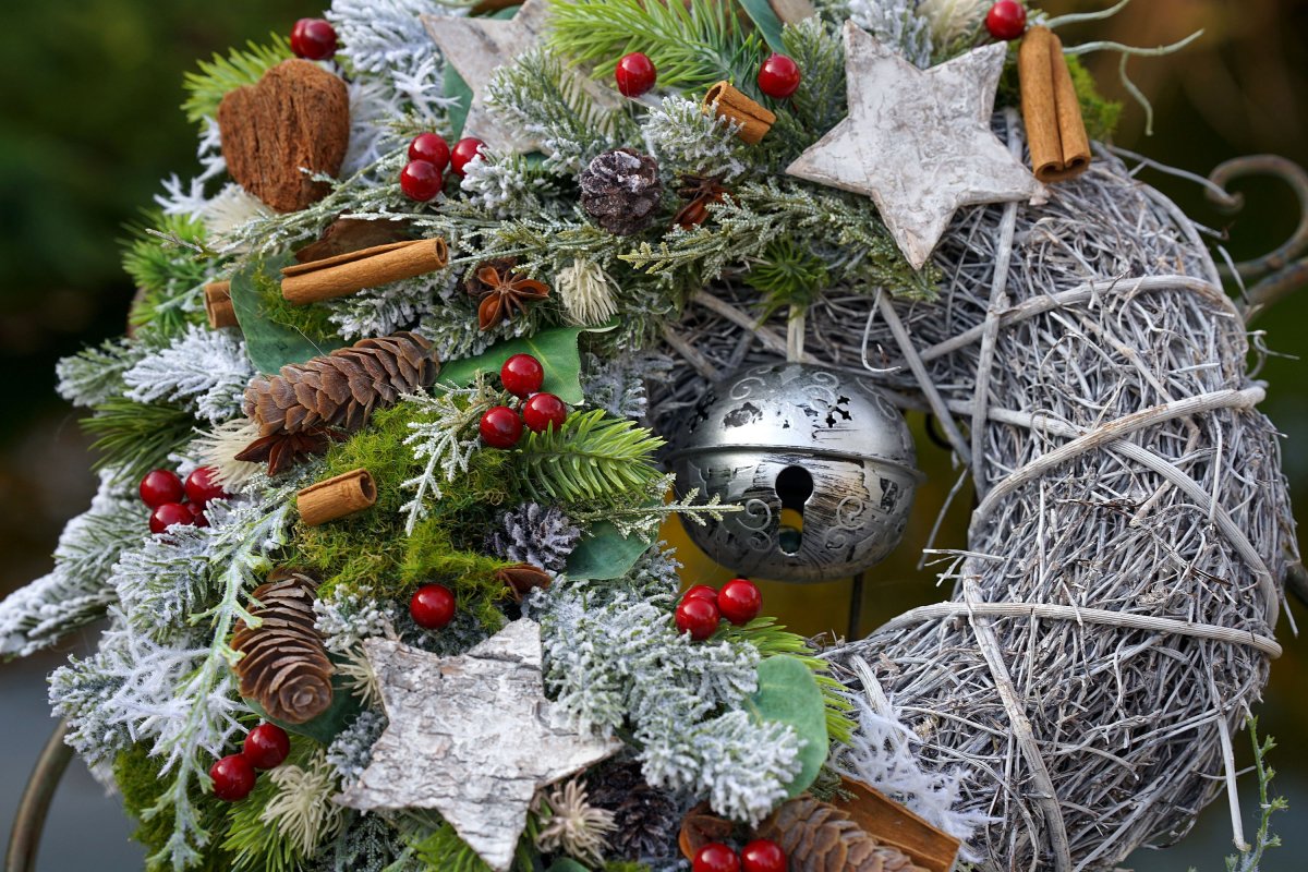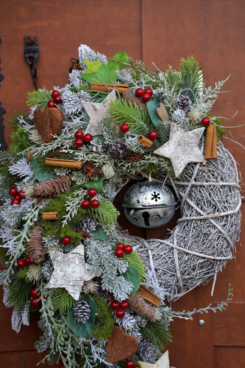 Vánoční věnec na masivním korpusu s umělým realistickým chvojím ve 3D kvalitě. Rozměr věnce je 35x70cm.
