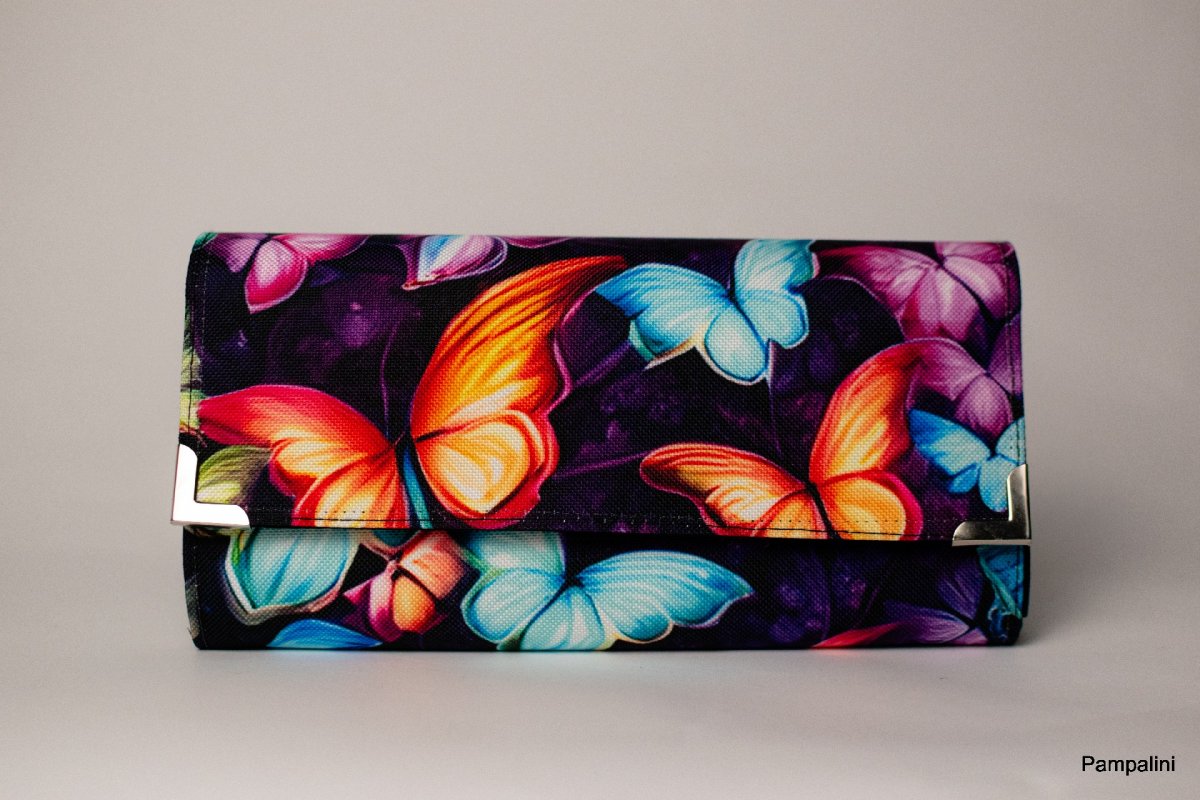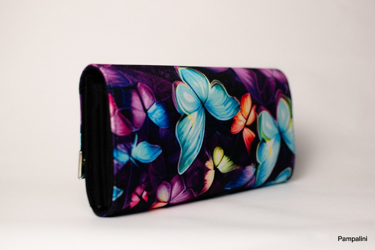 Velká peněženka ušitá z odolné kočárkoviny.  Pevně vyztužená a opatřená kovovými rohy.