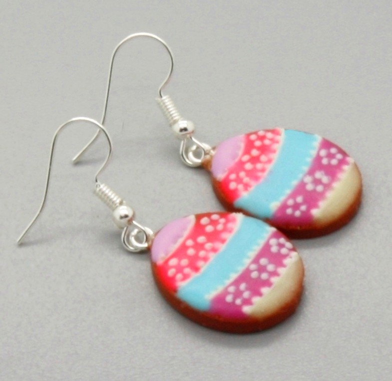 ručně modelovaný šperk z polymerové hmoty, zdobeno polevou do podoby kraslic