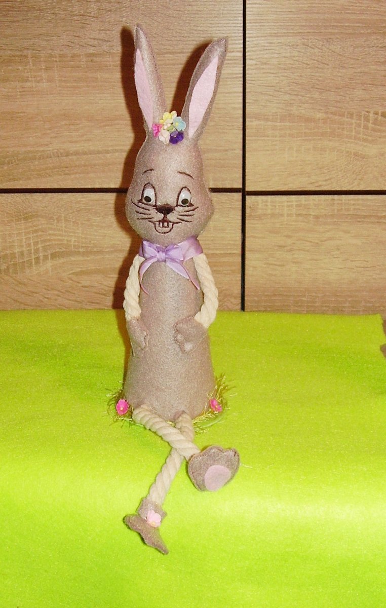 Dekorace zhotovená z plsti. Výška 27cm+ 11cm nohy. Barva béžová.