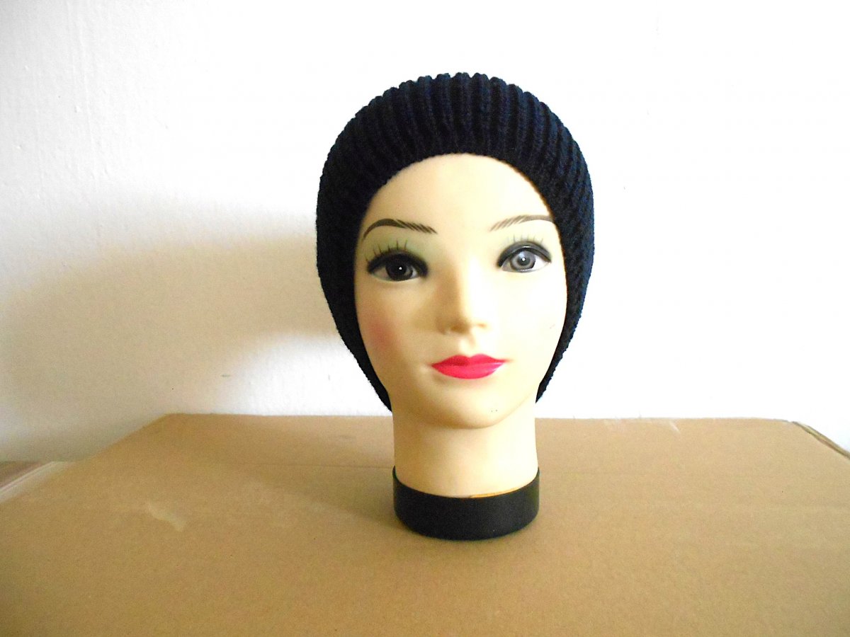 Strojově pletená, pružná, delší čepice, tmavě modrá, zelená, černá, 50% merino, 40%vlna, 10%akryl, výška 26 cm, obvod hlavy 56-65cm.