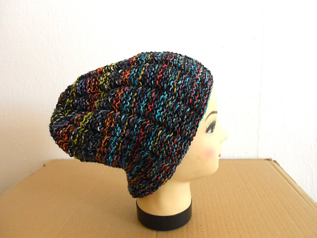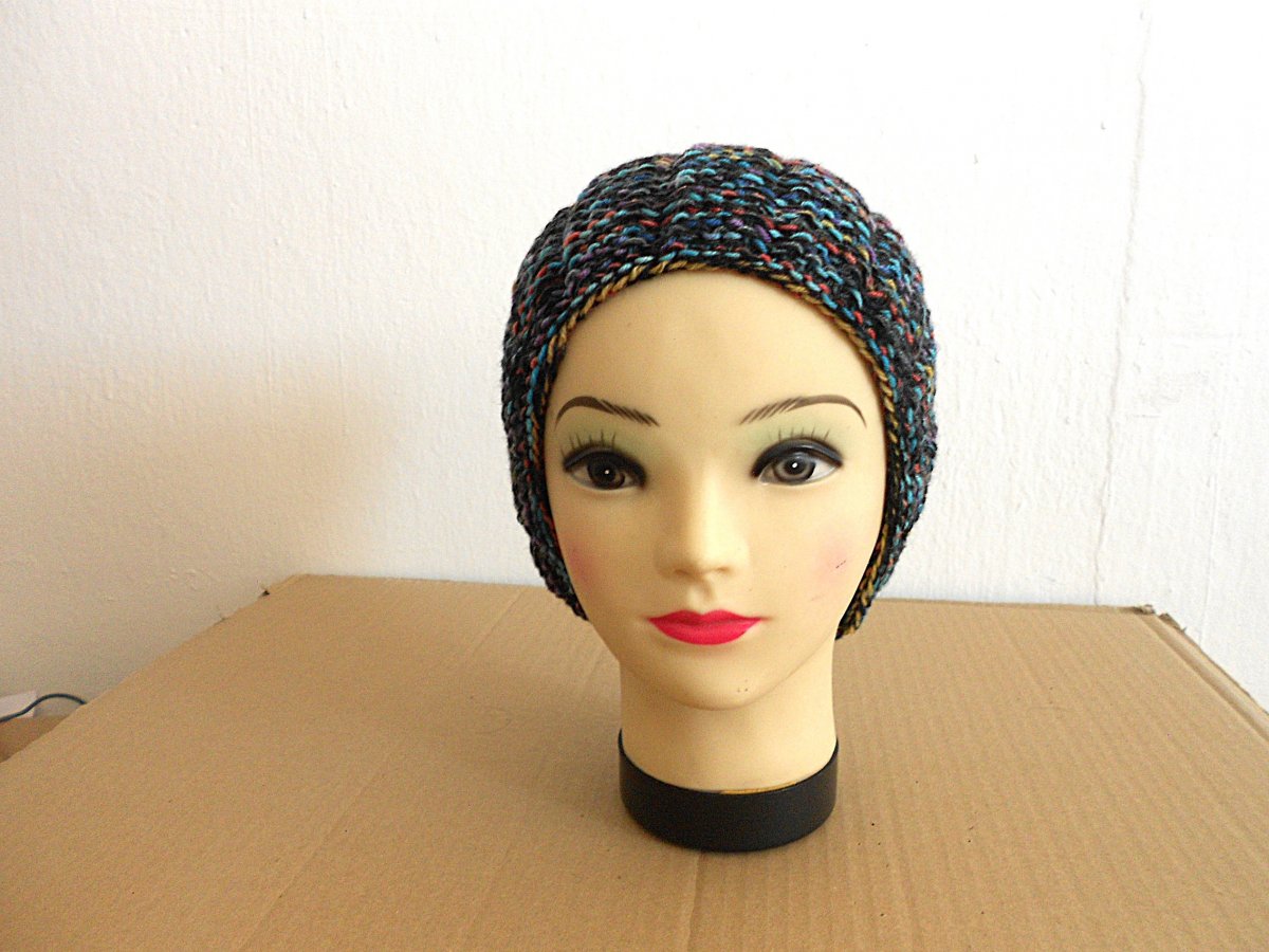 Ručně pletená čepice. Velikost uni: obvod hlavy 55- 62cm, výška 23cm, barevná, 50% merino, 50% akryl. Doporučuji ruční praní. Sušit volně položené.