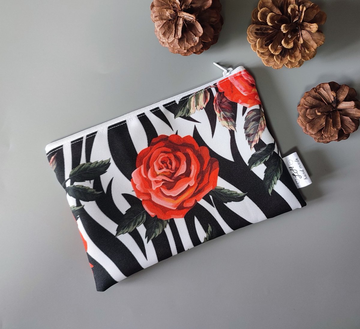 Kapsička je vypodšívkovaná bavlněnou látkou a má rozměry 19 x 13 cm.