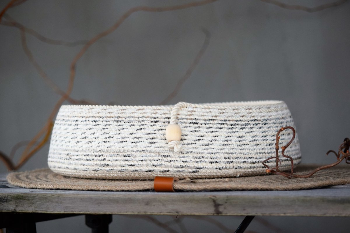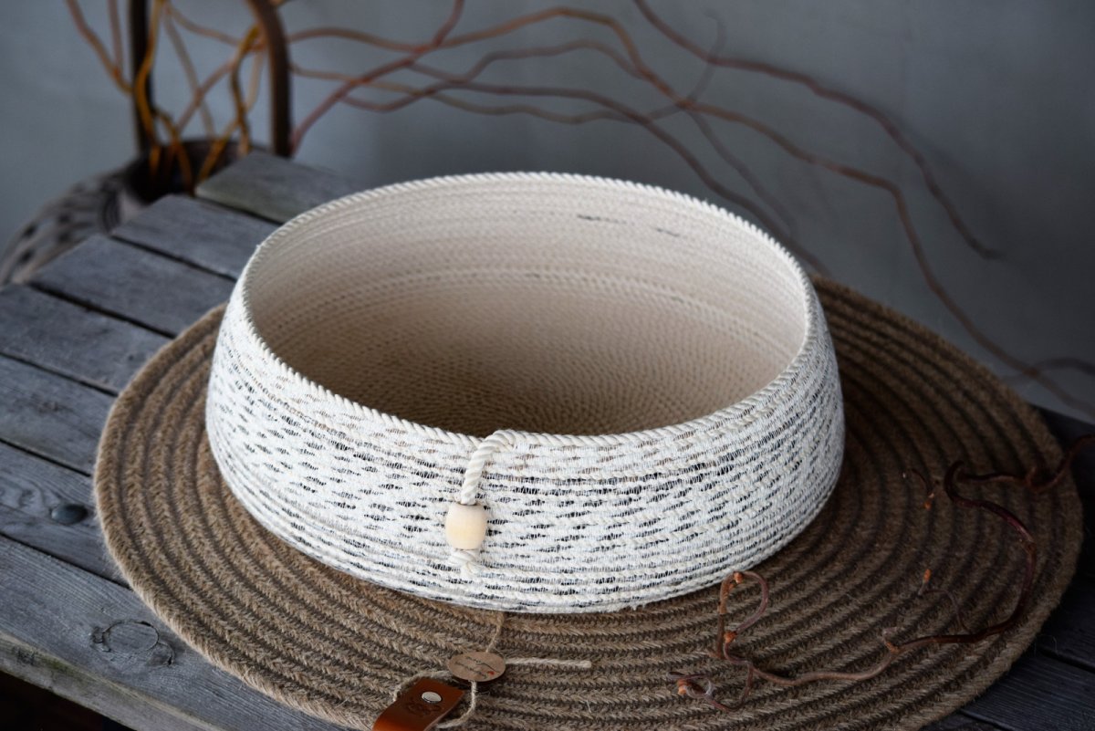 Velká ošatka z bavlněných provazů v přírodní krémové barvě s vnějším přírodním melírkem
