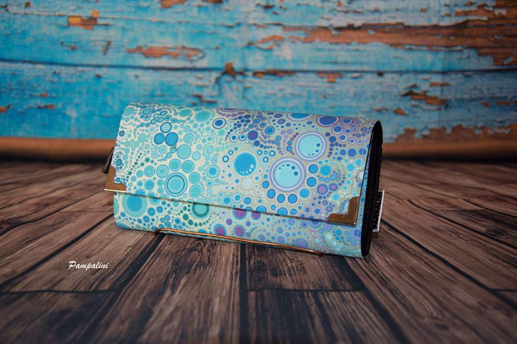 Velká peněženka ušitá z krásné zahraniční designové látky.  Pevně vyztužená a opatřená kovovými rohy.