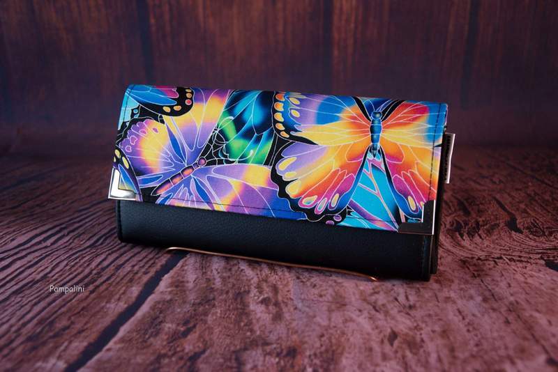 Velká peněženka ušitá z krásné zahraniční designové látky.  Pevně vyztužená a opatřená kovovými rohy.