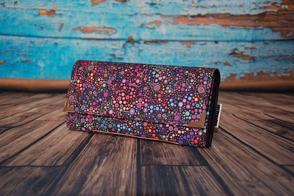 Velká peněženka ušitá z krásné zahraniční designové látky.  Pevně vyztužená a opatřená kovovými rohy.