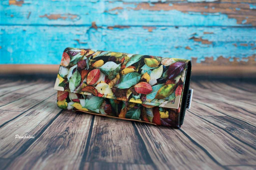 Velká peněženka ušitá z krásné zahraniční designové látky.  Pevně vyztužená a opatřená kovovými rohy.