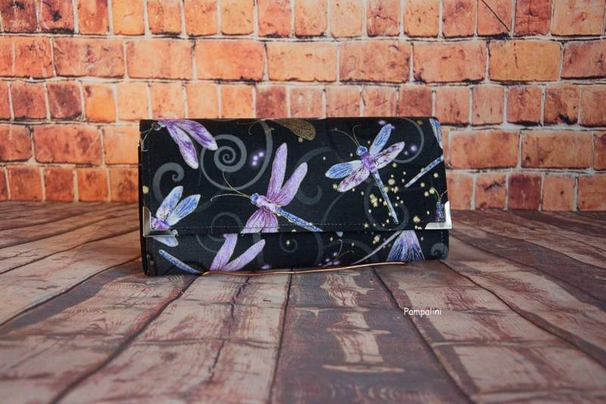 Velká peněženka ušitá z krásné zahraniční designové látky. Pevně vyztužená a opatřená kovovými rohy.