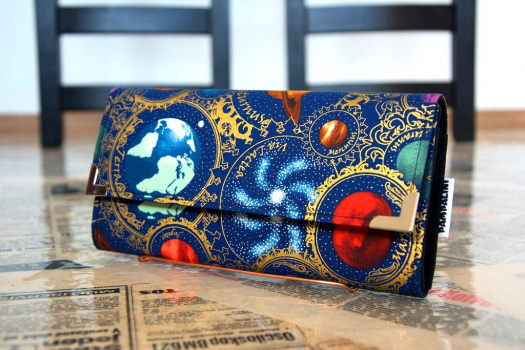 Velká peněženka ušitá z krásné zahraniční designové látky.  Pevně vyztužená a opatřená kovovými rohy.