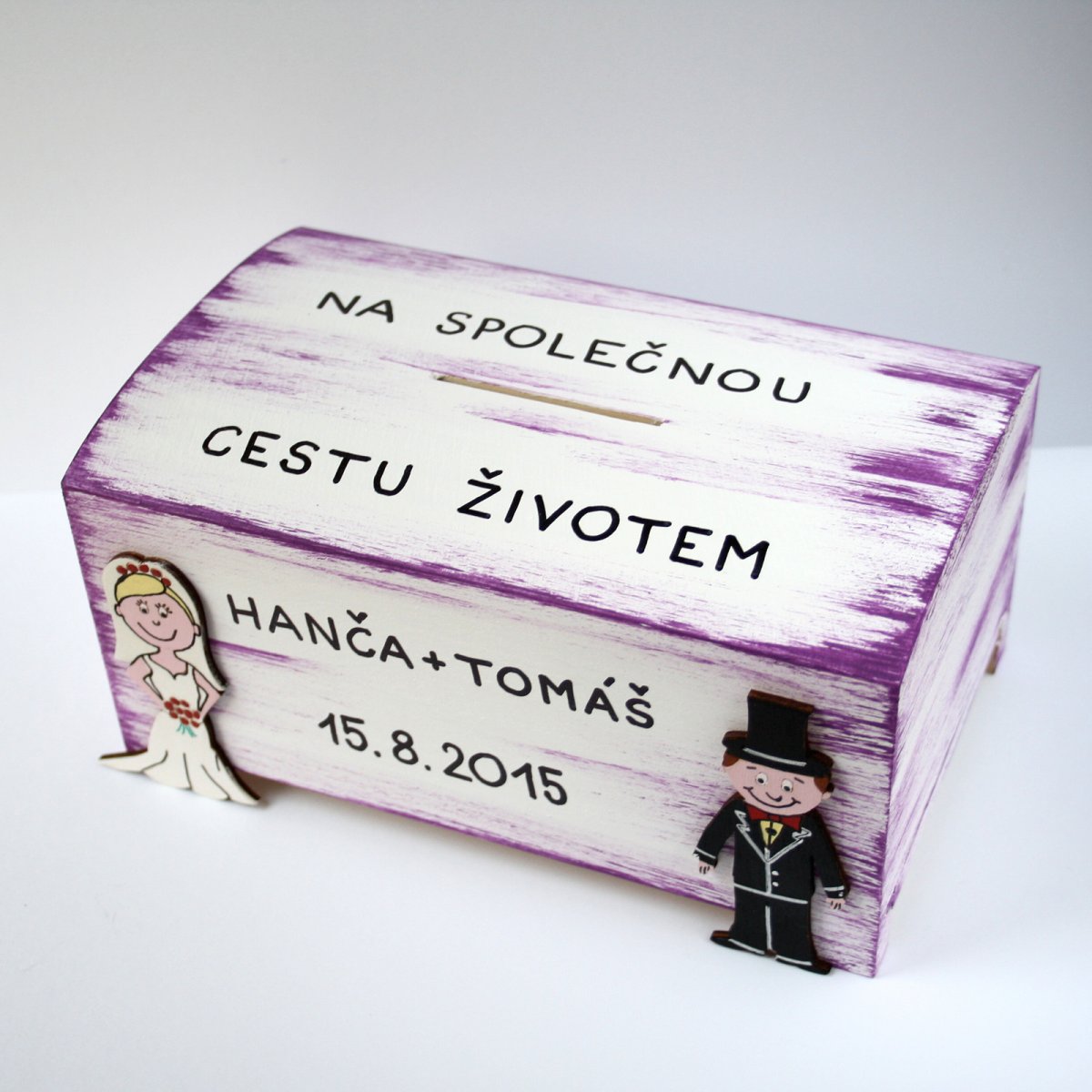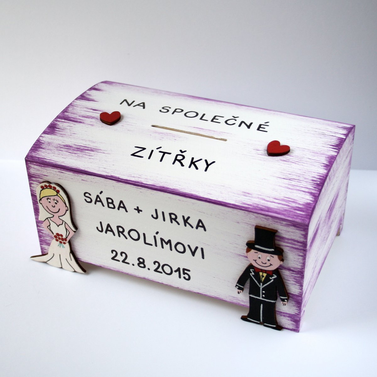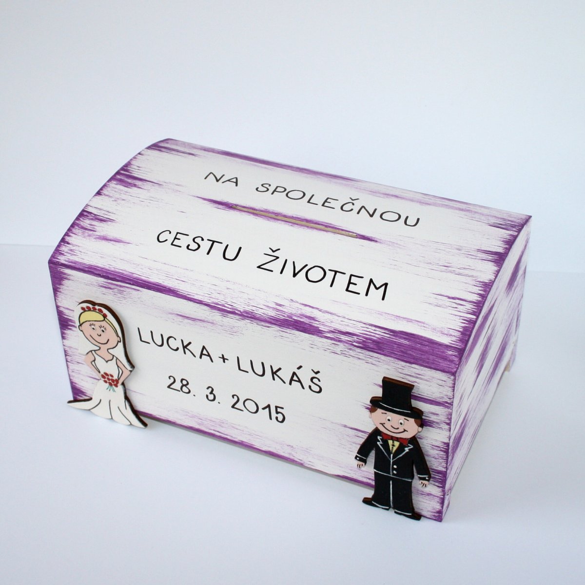 Samozřejmě není problém změnit i název navrchu pokladničky, mohu napsat např. "NA SPOLEČNOU BUDOUCNOST", "NA SPOLEČNOU CESTU ŽIVOTEM", "NA SVATEBNÍ CESTU", "NOVOMANŽELŮM"...