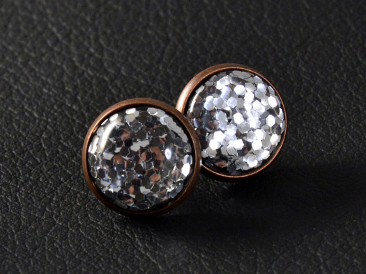 Puzetkové náušnice s třpytkovou čočkou o velikosti 12 mm ve stříbrné barvě.