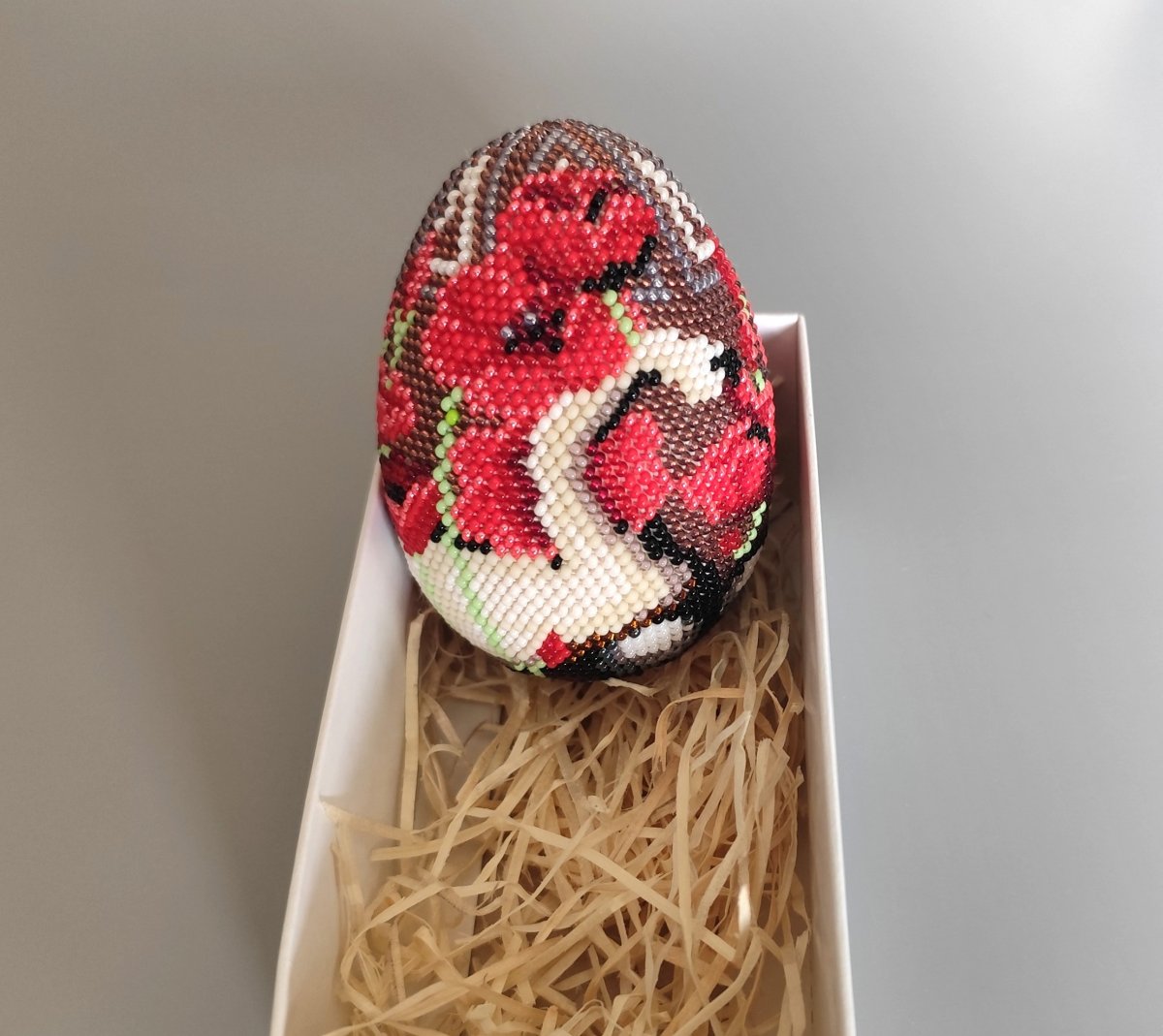 Velikonoční vajíčko je háčkováno z rokajlových korálků.