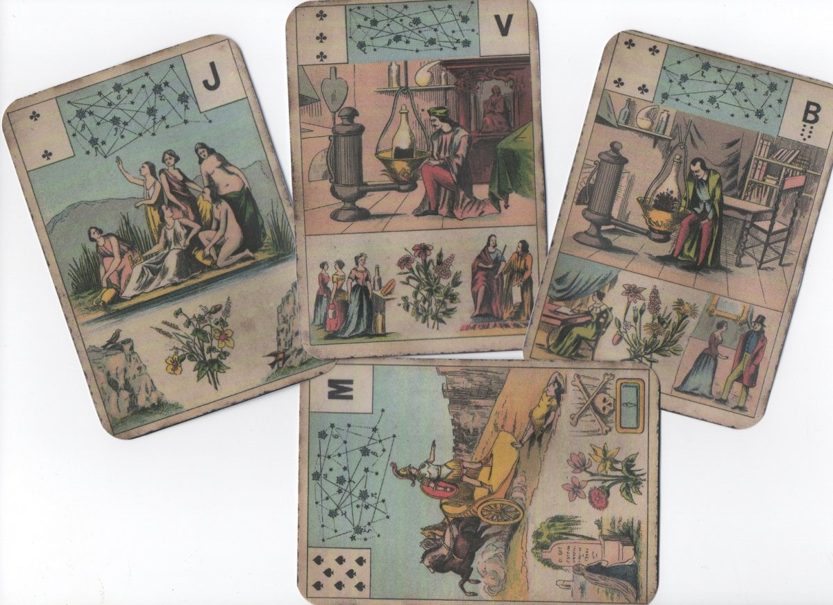 VELKÝ LEMORMAND 54karet astro-mytologických vykládacích karet reprint karet z roku 1890 tato sada sloužila k určování hlavních osudových událostí v životě u těchto karet je možné věštění pomocí mytologie, astrologie,numerologie,geometrie a květomluvy , vel:90x129mm.tisk na papír 250g ruční práce