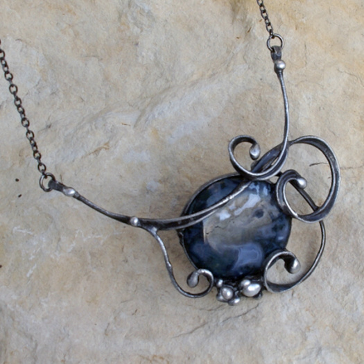 Cínovaný náhrdelník s mechovým achátem a říční perlou