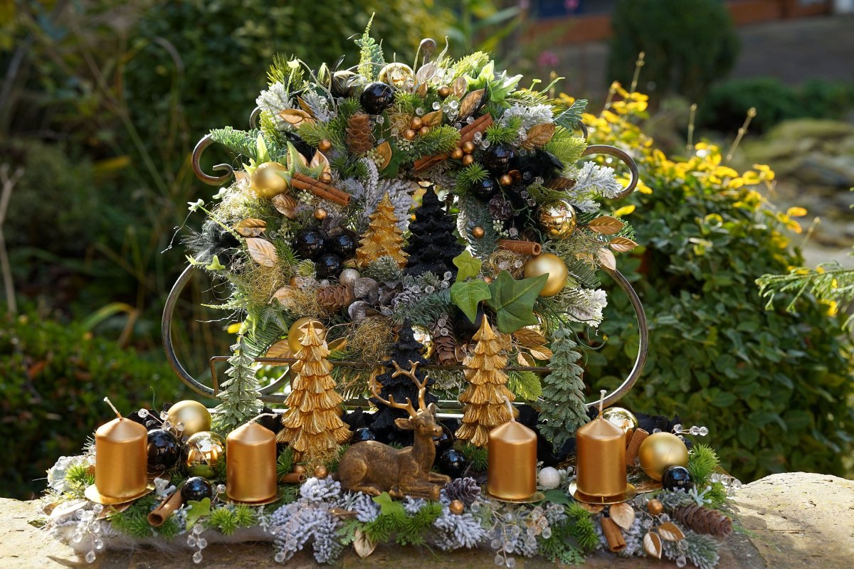 Vánoční věnec o průměru 38cm v kombinaci černé a zlaté barvy. Materiál je trvanlivý, chvojí ve 3D kvalitě.