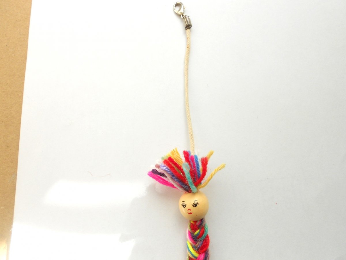 Přívěsek na klíček, kabelku, batoh a podobně. Velikost bez šňůrky a karabinky 13cm, šířka cca 2 cm. Připnutí přes karabinku z nerez. ocely. Doporučuji ruční praní.