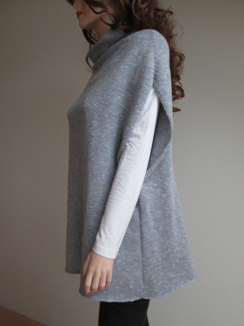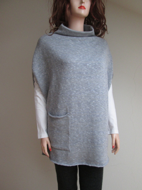 Dámská pletená vesta se stojáčkem a kapsou, má hlubší průramky . Středně silná, velmi teplá, s příměsí vlny.